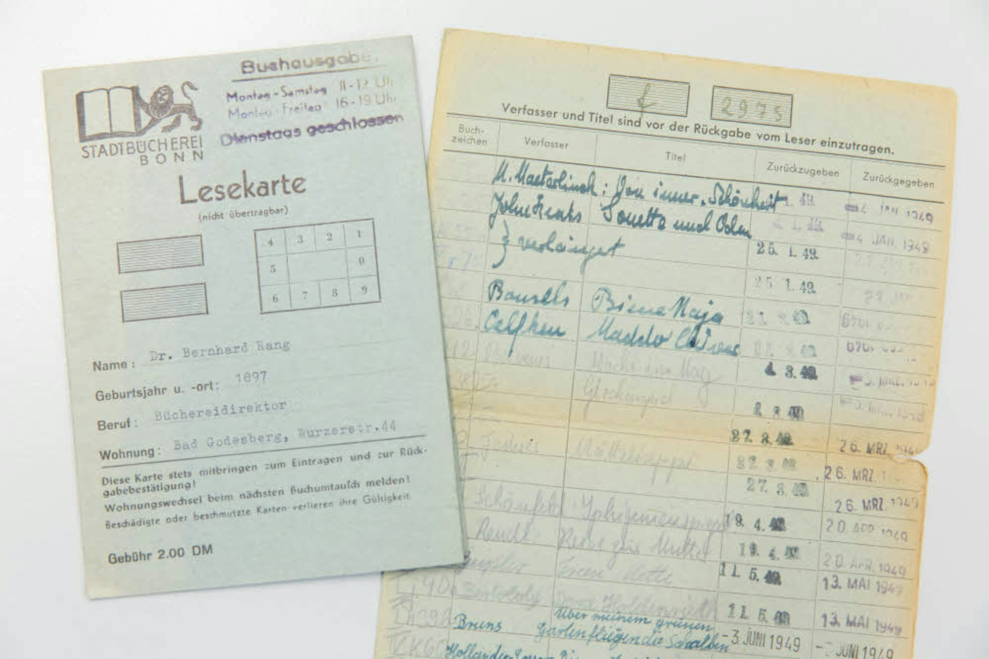 Bonn – Wofür konnte sich der Bonner Kunde oder die Bonner Kundin der Stadtbücherei mit der Registriernummer 2973 im Jahre 1949 literarisch erwärmen? Das Jahr fing mit dem belgischen Klassiker des Symbolismus, Maurice Maeterlinck, an („Von der inneren Schönheit“), es folgte ein Ausflug in die englische Romantik (Sonette und Oden von John Keats), zum geistigen Runterkühlen wählte er/sie dann Waldemar Bonsels „Biene Maja“ aus und als Einstimmung auf den Sommer kam der Roman einer gewissen Marianne Bruns mit dem Titel „Über meinem grünen Garten fliegen die Schwalben“ zur Ausleihe. Fürwahr eine kunterbunte Mischung, die aber auch die Bandbreite der Bücherbestände der damaligen Stadtbücherei (heute Stadtbibliothek) zum Ausdruck bringt.