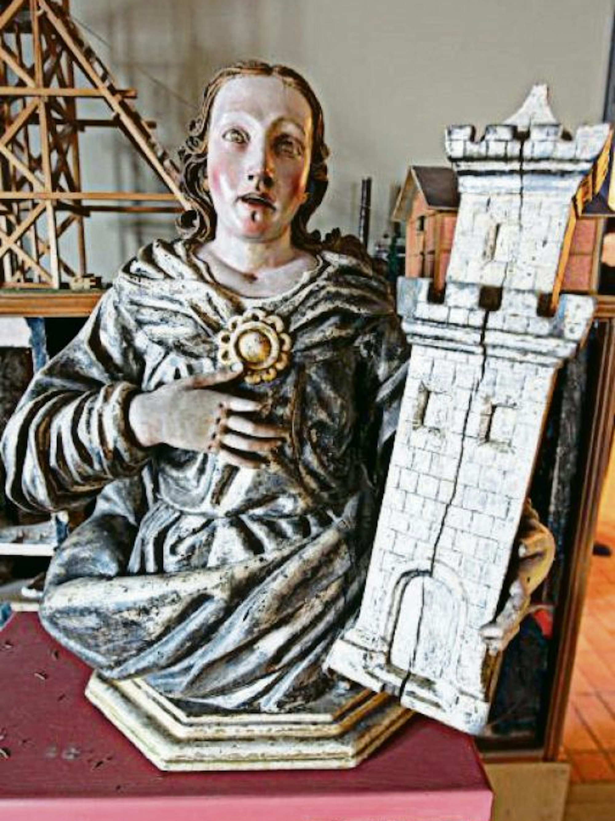 Eine Statue der heiligen Barbara, der Schutzheiligen der Bergleute, kann im Museum besichtigt werden.
