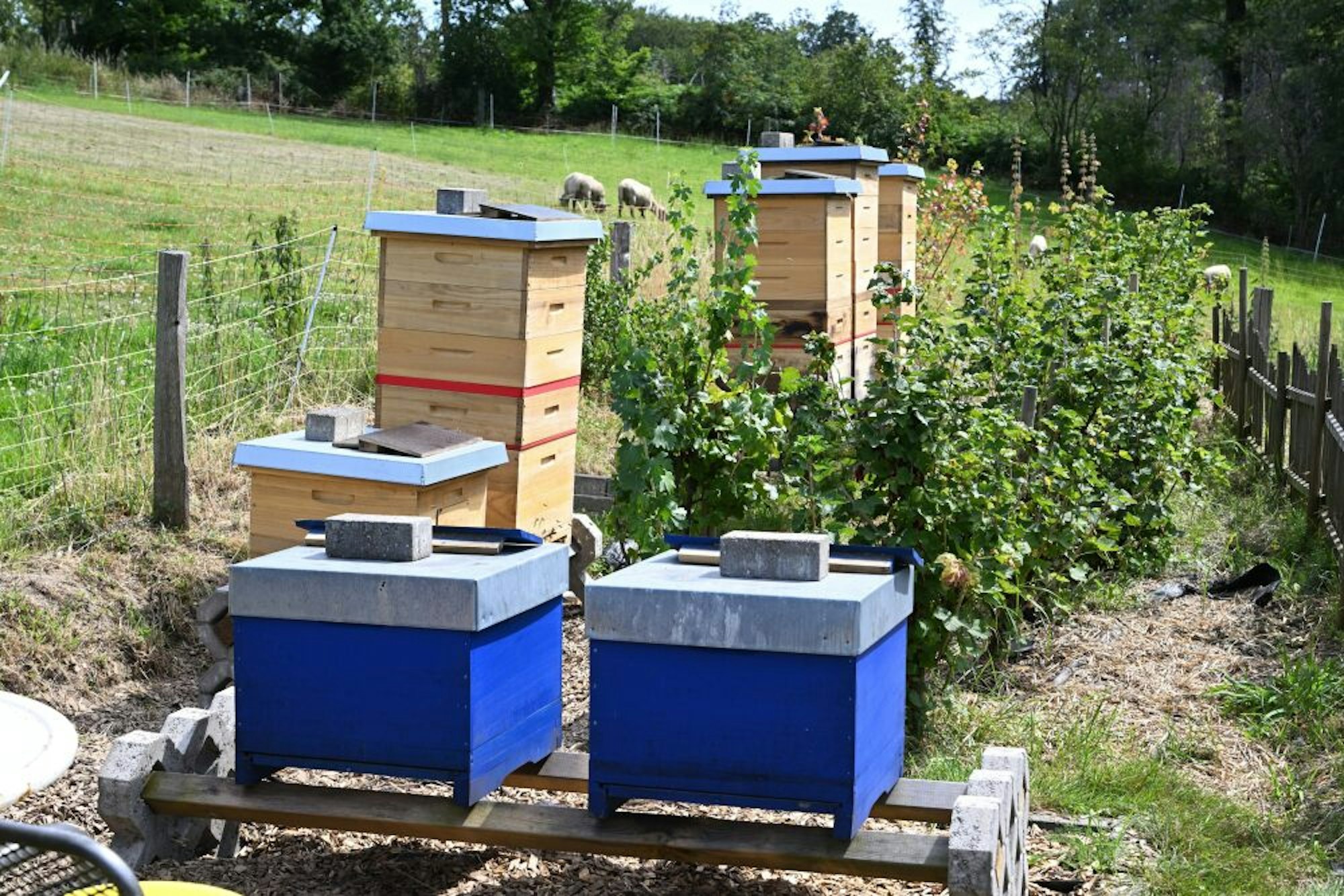 In seinen sieben Bienenstöcken wohnen jeweils mehrere zehntausend Bienen, die die Pflanzen in der Umgebung bestäuben. „In einem Bienenstock sind sogar ungefähr 50.000 Bienen. Das ist aber ein starkes Bienenvolk“, erzählte er. Den habe er vom Start-up „Hektar Nektar“ in Kooperation mit „E wie Einfach“ gestellt bekommen.