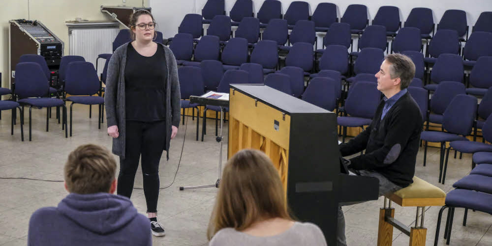 „Es geht darum, ob jemand eine stimmliche Bereicherung für den Chor ist, nicht darum einen Stuhl dazu zustellen“, erklärt Kokott den Entscheidungsprozess. Vor Elisabeths Namen kommt auf dem Jury-Zettel anschließend ein Häkchen. Elisabeth hat sich schon mehrere Wochen im Voraus beworben, als sie eine Ankündigung bei Facebook sah. Ganz spontan hingegen war Ines Rademacher (20), die am selben Tag in der Zeitung von dem Casting erfahren hat. Ines macht eine Ausbildung zur Logopädin und nimmt Einzelunterricht in Gesang. „Ich würde gerne mit anderen gemeinsam singen, aber auf professioneller Basis“, sagt sie. Das könnte sie im Jugendchor finden. Er hat im Jahr 30 bis 40 Auftritte. Einmal in der Woche wird dafür geprobt. Zum Casting sind neun Bewerber gekommen, einige hatten zuvor abgesagt. Bei den letzten Malen sei die Beteiligung höher gewesen, sagt Kokott, aber das liege vermutlich an der Karnevalszeit. Dass das Interesse am Chorsingen kleiner wird, sehe er nicht. „Sieben der Gesangstalente werden in den Chor aufgenommen“, verrät Kokott. Dazu gehören am Ende auch Elisabeth und Ines.