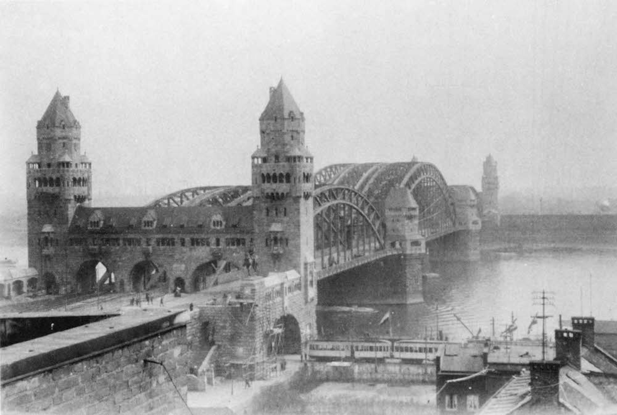 Die Hohenzollernbrücke weihte der Kaiser am 22.Mai 1911 selbst mit ein. In den 20er Jahren war das Bauwerk an den Zugänge noch überbaut.
