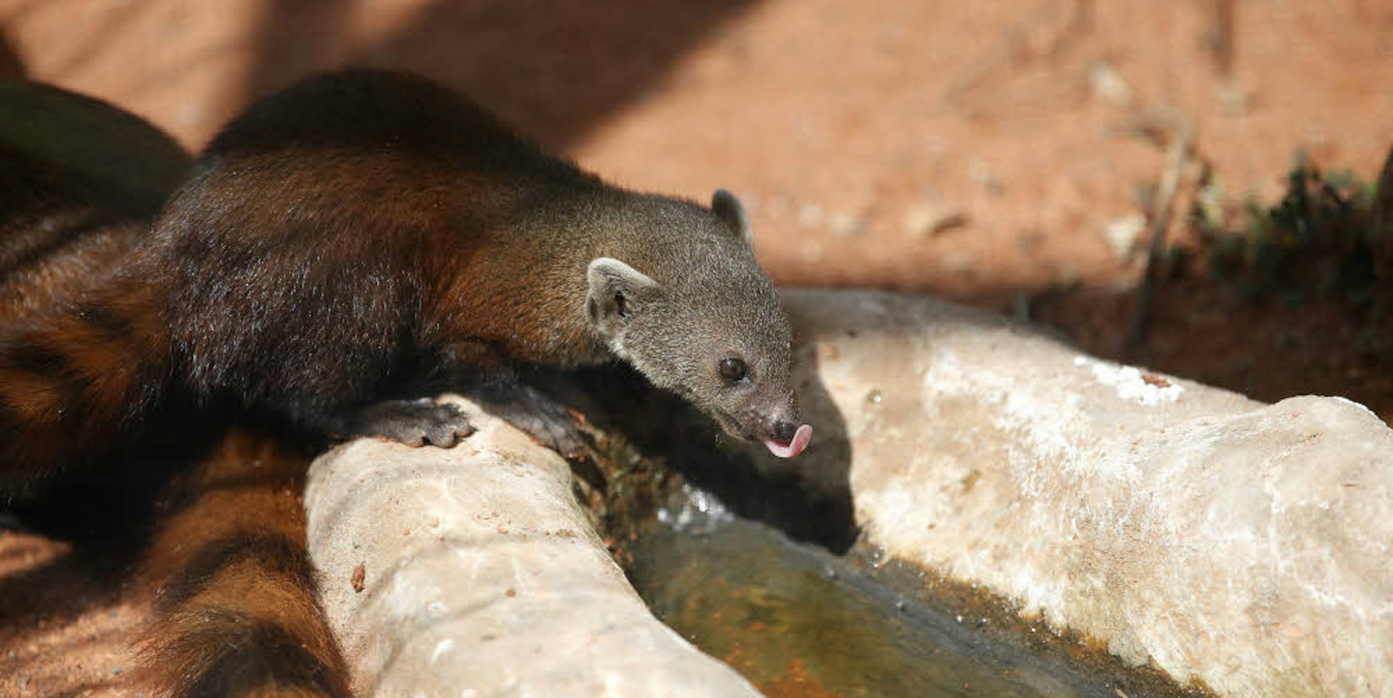 „Hugo“ ist ein neugieriges, kleines Raubtier: Die Leckereien, die die Tierpfleger für den zwei Monate alten Ringelschwanzmungo in Eierkartons oder Pappschachteln versteckt haben, hat er jedenfalls schnell weggeputzt. Früchte, Insekten, aber auch „fleischhaltige Sachen“, wie Küken und Mäuse stehen im Zoo bereits auf seinem Speiseplan. Besucher sollten auch tunlichst nicht den Finger ins Gehege halten – „Achtung! Wir beißen!“, warnt ein Schild.