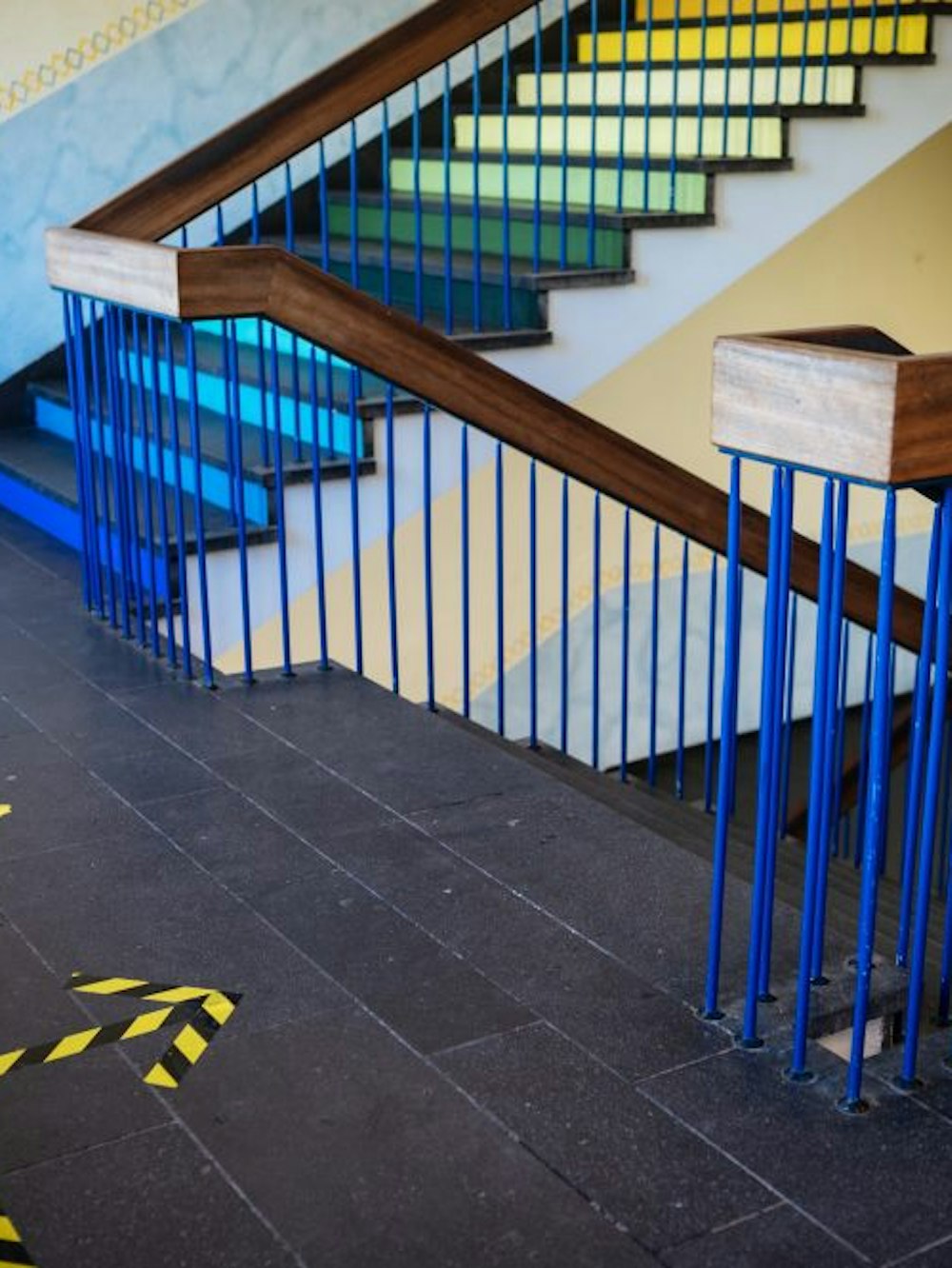 Auf dem Boden ist ein Leitsystem aufgeklebt.