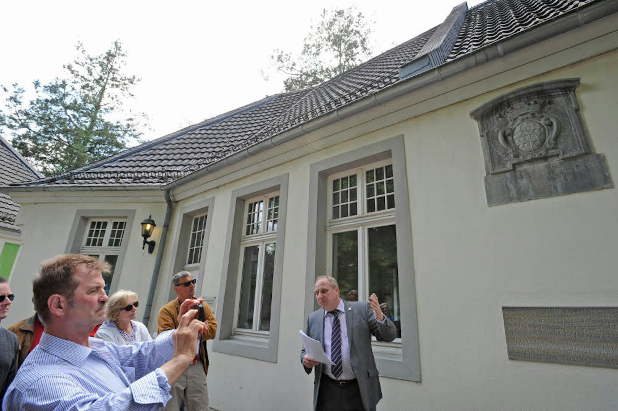 Michael Gutbier vom Opladener Geschichtsverein (OGV) führte am Samstag eine an der Geschichte Morsbroichs interessierte Gruppe über den ehemaligen Besitz des Deutschen Ordens. Dieser erstreckte sich um das „Feste Haus“ herum und auch über die heutige Gustav-Heinemann-Straße hinweg, die das Gebiet seit den 60er Jahren durchkreuzt.