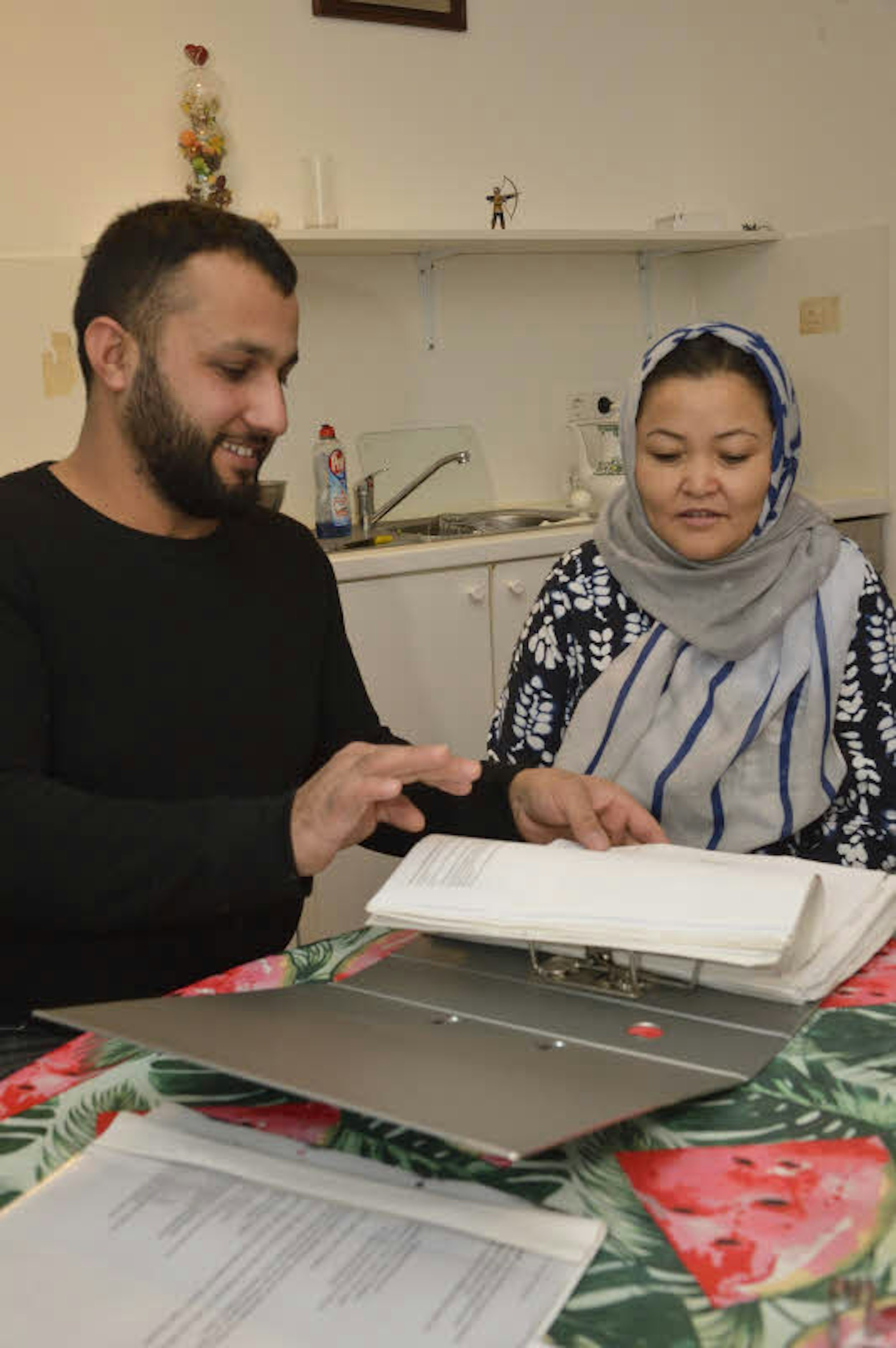 Otto Baldus blättert in zwei Ordnern, prall gefüllt mit Briefen und Bescheiden, die den bisweilen gewundenen Weg durch die Behörden dokumentieren. Das bedeutet vor allem: Formulare ausfüllen, Anträge stellen. Man muss sich beim Einwohnermeldeamt anmelden, beim Stromanbieter. Mutter Malika, die Deutsch weder lesen noch schreiben kann, sagt: „Ich habe Angst, wenn ich einen Brief aus dem Kasten hole.“ Rundfunkbeitrag? Noch nie gehört. Malika unterschreibt mit schnörkeligen Buchstaben Formulare, deren Inhalt sie ohne Erläuterung nicht versteht. Mufid Ramadan (28), ebenfalls 2015 aus Afghanistan geflohen, hilft dabei als Übersetzer.