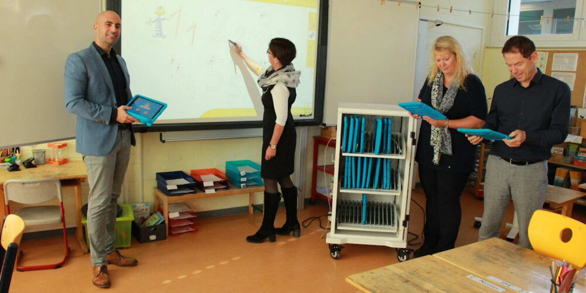Mit 14 weiteren elektronischen Tafeln wird der Grundstock zur digitalen Ausstattung an vier weiteren Grundschulen noch in diesem Jahr gesetzt. Es sind die katholische Grundschule Hangelar sowie die drei Gemeinschaftsgrundschulen Menden, Am Pleiser Wald und Sankt Augustin.