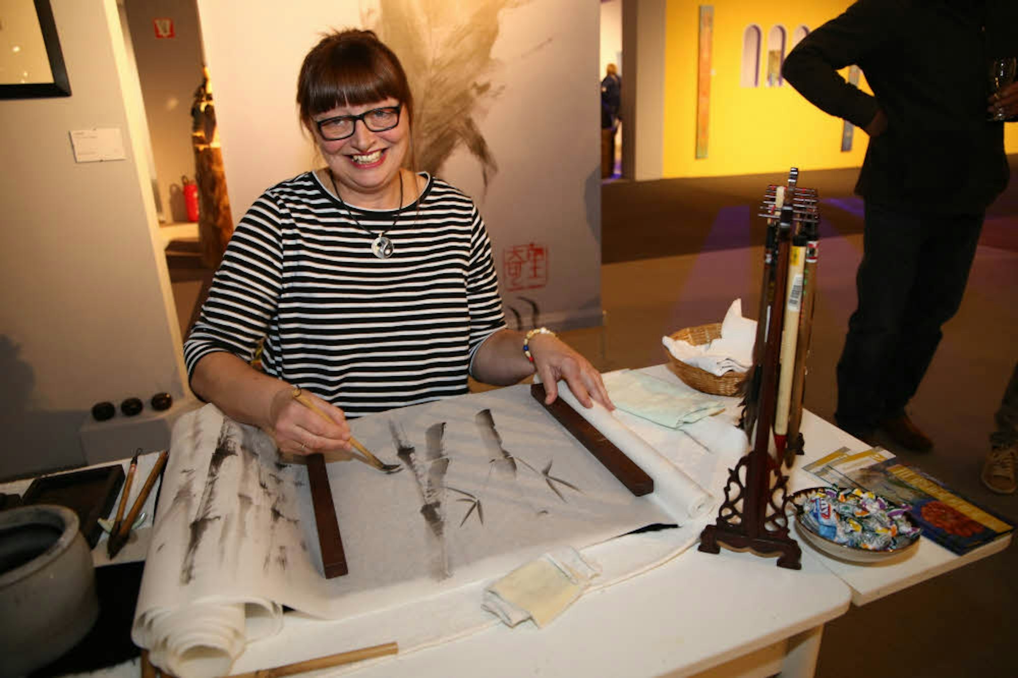 Rietje van den Berg aus Hilversum demonstrierte ihre Kunst der Tuschezeichnung live bei der Vernissage. )