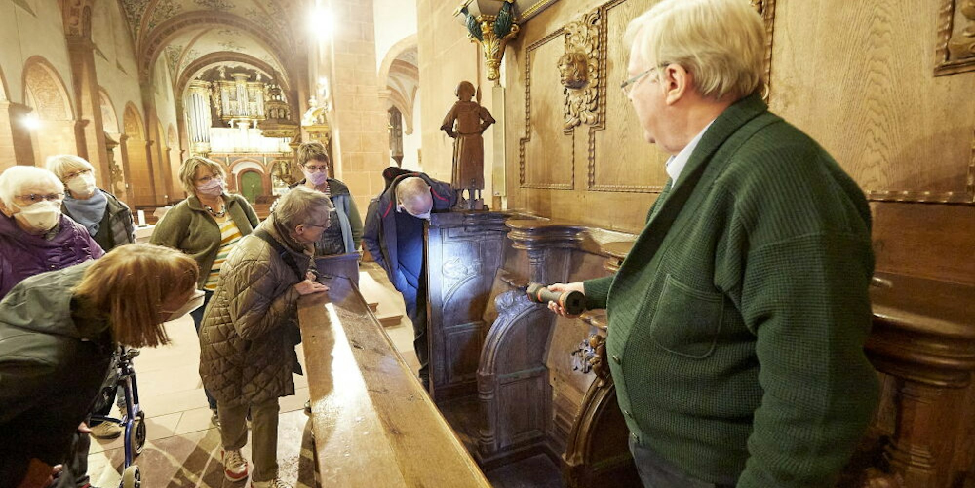 So etwa bei dem barocken Chorgestühl, das an den Seiten des Altarraum zu sehen, aber im Normalfall nicht zur Besichtigung freigegeben ist. Alleine über dieses Thema könne eine eigene Führung gemacht werden. Und so nahmen die Organisatoren das Chorgestühl bei der ersten der neuen Themenführungen auch in den Fokus.