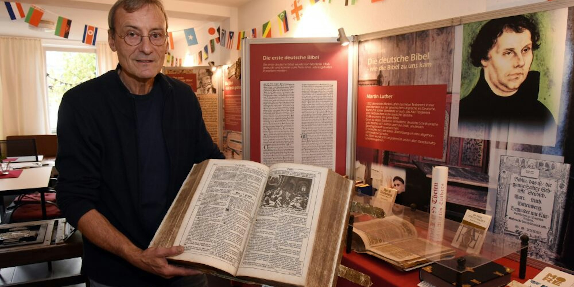 Es geht Reinhard Lorenz vom Vorstand der Sozialstiftung Oberberg darum, die Wirkung der Bibelübersetzung von Martin Luther aus dem Jahr 1522 in die sächsische Kanzleisprache zu verdeutlichen, sagt er. Und das ziemlich genau 500 Jahre, nachdem Luther binnen weniger Wochen auf der Wartburg bei Eisenach das Neue Testament übersetzt hat.