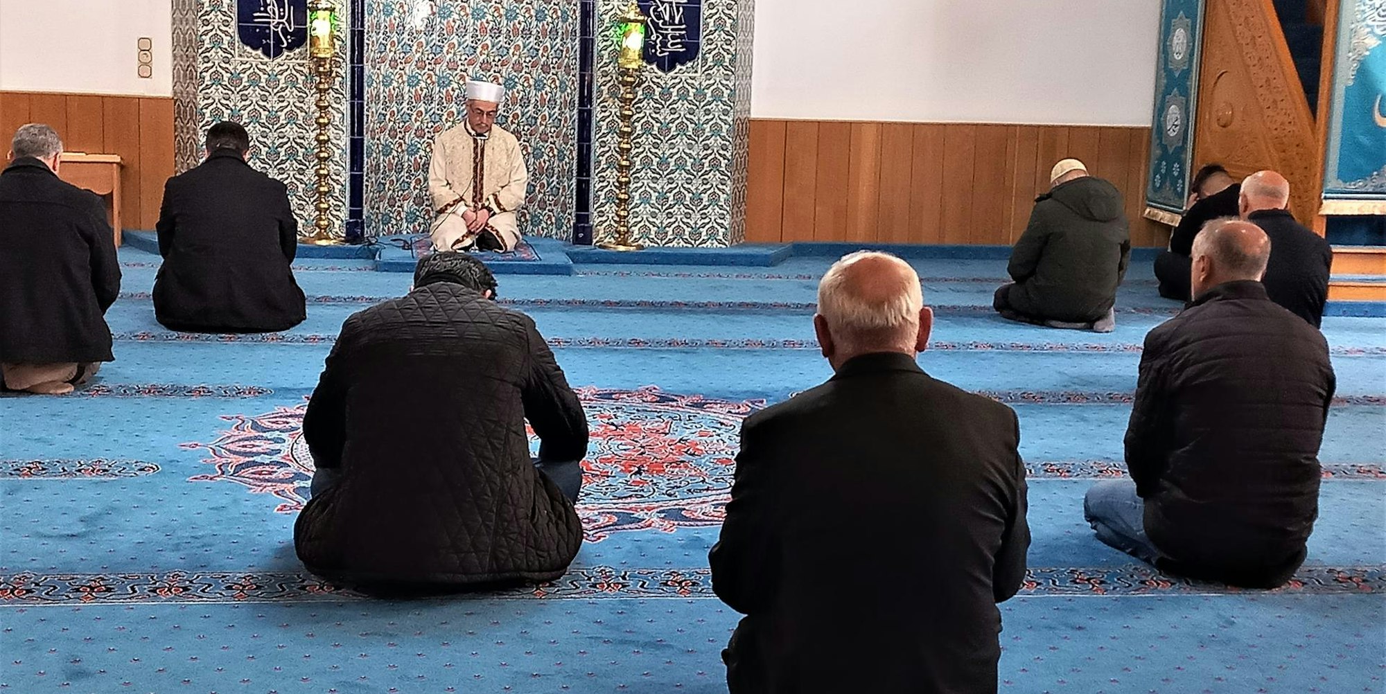 Beim Nachmittagsgebet mit Imam Recep Ali Özaydin wurden Verse aus dem Koran für die Gäste ins Deutsche übersetzt.