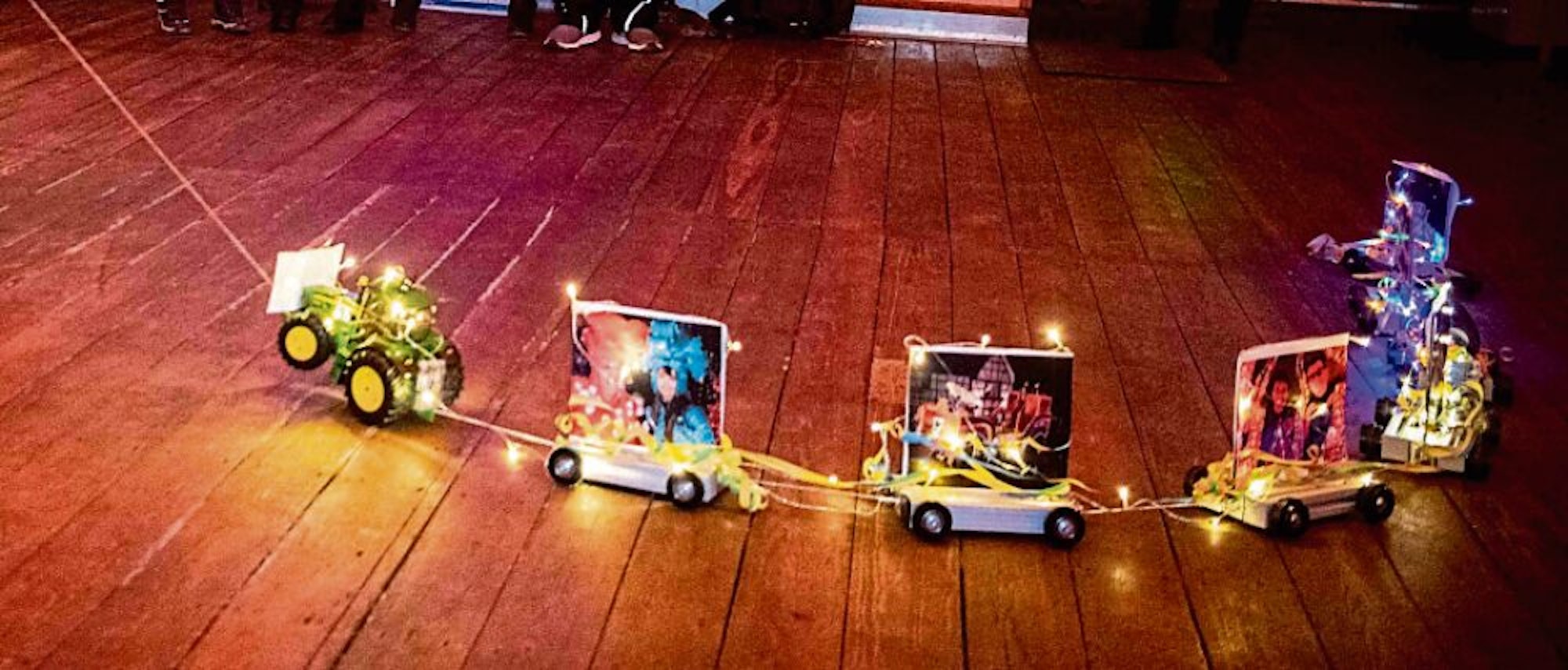 Mit Maske und Abstand, durchgefroren und ein bisschen traurig erreichen die Spaziergänger die Römerstube. Still ist es, nix mit After-Zoch-Party. Doch Moment. Plötzlich erklingt Musik, erschallt ein kräftiges, vierstimmiges Alaaf. Dr Zoch kütt! Ein Spielzeug-Zug ist’s, den Georg Stoll mit seinen Kollegen einer Kölner Firma für ein Video gebastelt hat. Seine Tochter Alina hatte die Idee, dass das auch ein toller Corona-Lichterzug wäre.