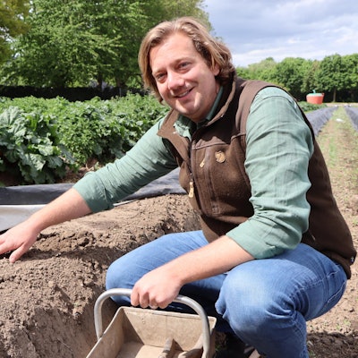Ein Feldarbeiter sticht Spargel. (Symbolbild)