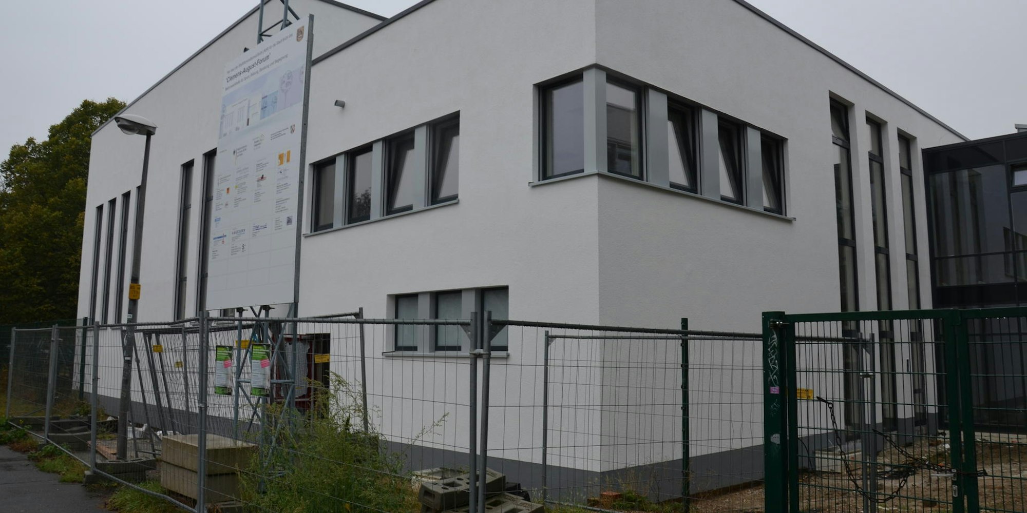 Brühl – Rund anderthalb Jahre nach dem Abbruch der maroden Turnhalle der Clemens-August-Schule nimmt nun der Nachfolgebau den Platz am Nord-Süd-Weg ein. Seit das Gerüst entfernt wurde, ist die weiße, von einigen Fenstern unterbrochene Fassade für jedermann zu sehen.