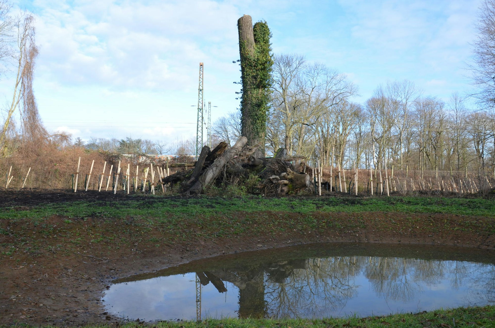 Baumstämme und Wasserlöcher sollen Amphibien und Insekten einen Lebensraum bieten.