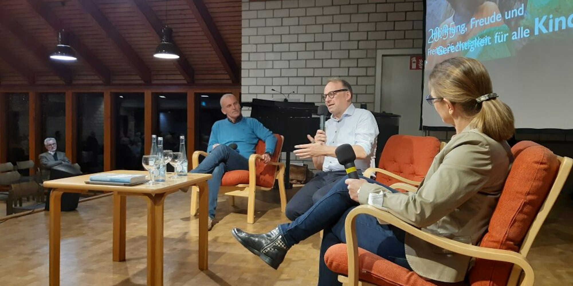 Im Gespräch mit Saskia Plüger-Stegemann und Jochen Gran berichtete Christoph Waffenschmidt (M.) von seinem Leben in Berlin und seiner Arbeit als Geschäftsführer von World Vision.