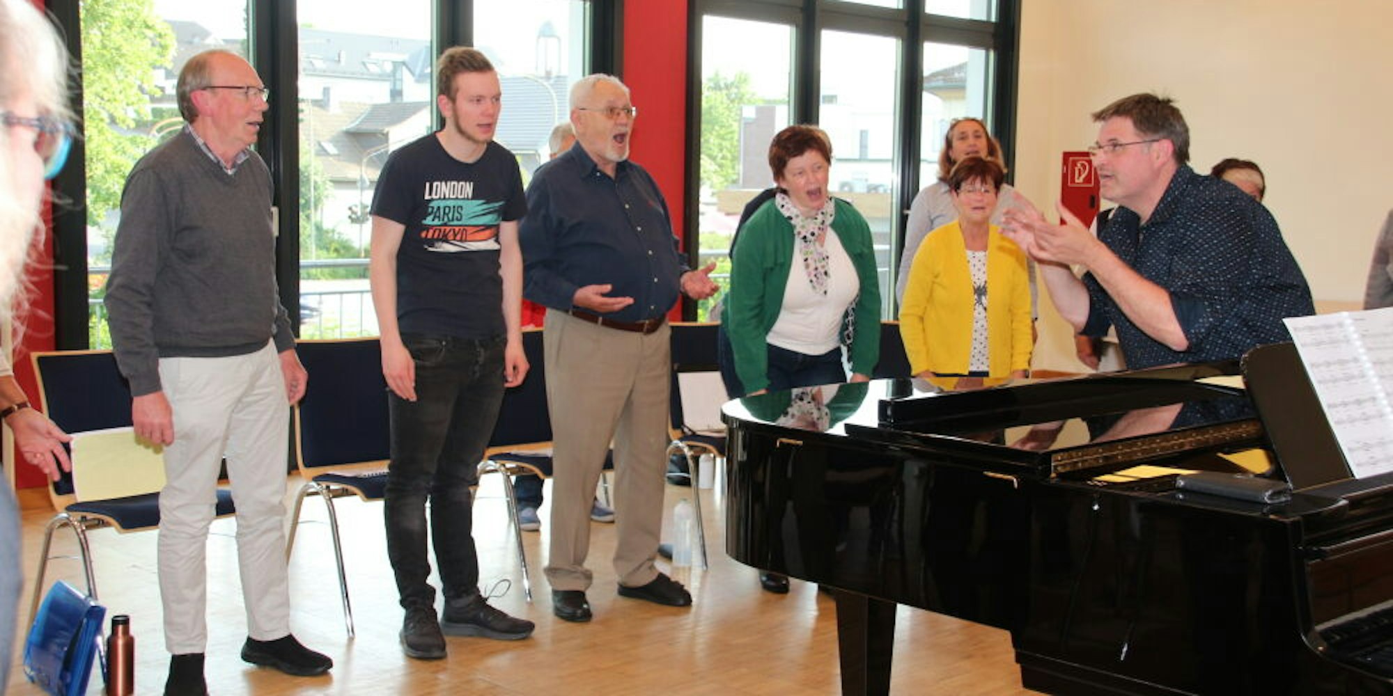 Probenarbeit im Severinushaus mit Chorleiter Mario Ahlborn (r.).