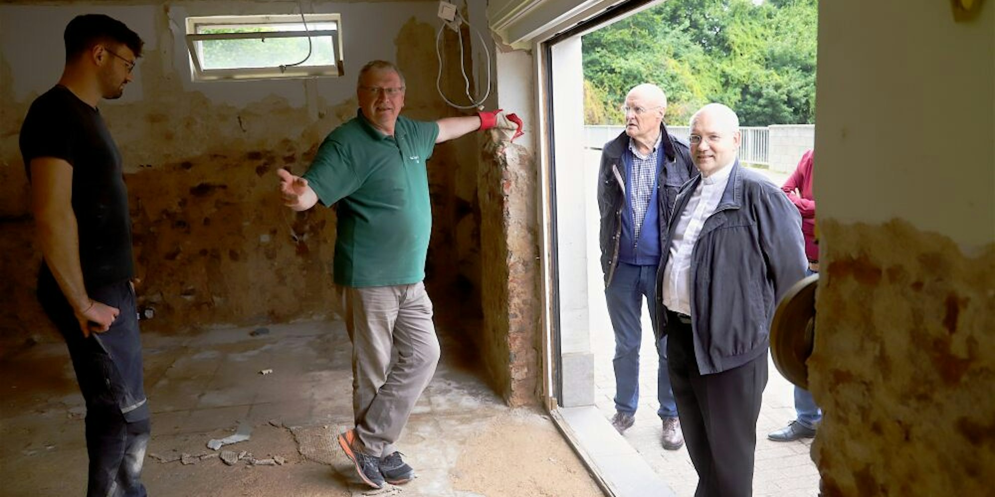 Dabei war der Besuch bei dem Kaller Pfarrer Hans-Joachim Hellwig nicht von Gemütlichkeit geprägt. „Pfarrer Hellwig ist von unseren Geistlichen am schlimmsten persönlich getroffen“, sagte Dieser. Das Pfarrhaus hatte unter Wasser gestanden und musste ausgeräumt werden. In den Räumen, von denen aus Hellwig bisher die Pfarre leitete, laufen nun die Bautrockner. So nahm Hellwig, begleitet von einigen Gemeindeangehörigen wie Caritas-Eifel-Geschäftsführer Rolf Schneider und CDU-Kreistagsfraktionschefin Ute Stolz, den Bischof mit auf einen Rundgang durch die vom Hochwasser zerstörte Bahnhofstraße.