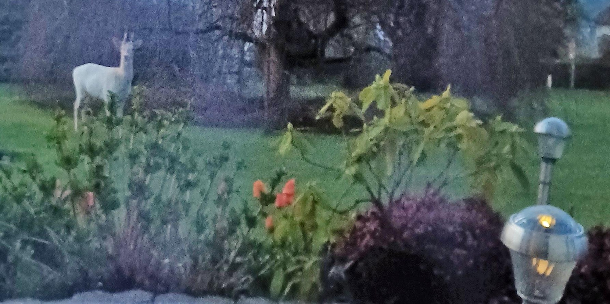 Kein Fabelwesen, sondern Realität: Der „weiße Hirsch“ von Scheuren taucht in Vorgärten auf.