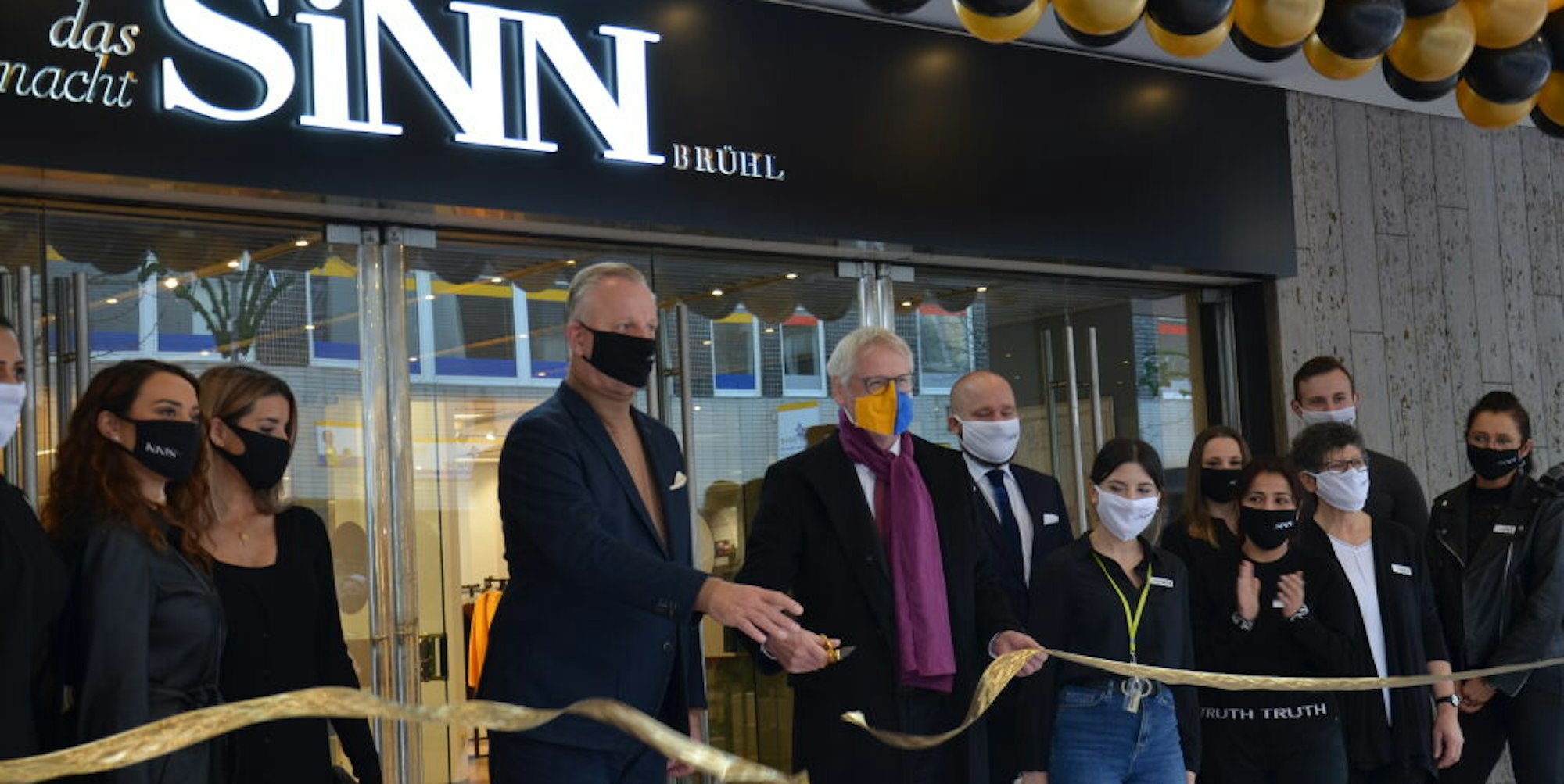 Mit diesem symbolischen Akt zur Wiedereröffnung des größten Geschäftshauses Brühls endete ein ambitionierter Spurt, den Handwerker, Putzleute und Mitarbeiter des Unternehmens mit Sitz in Hagen hingelegt hatten. Binnen weniger Wochen hatten sie aus der einstigen Kaufhoffiliale am Steinweg die 25. Niederlassung der Sinn GmbH gemacht.