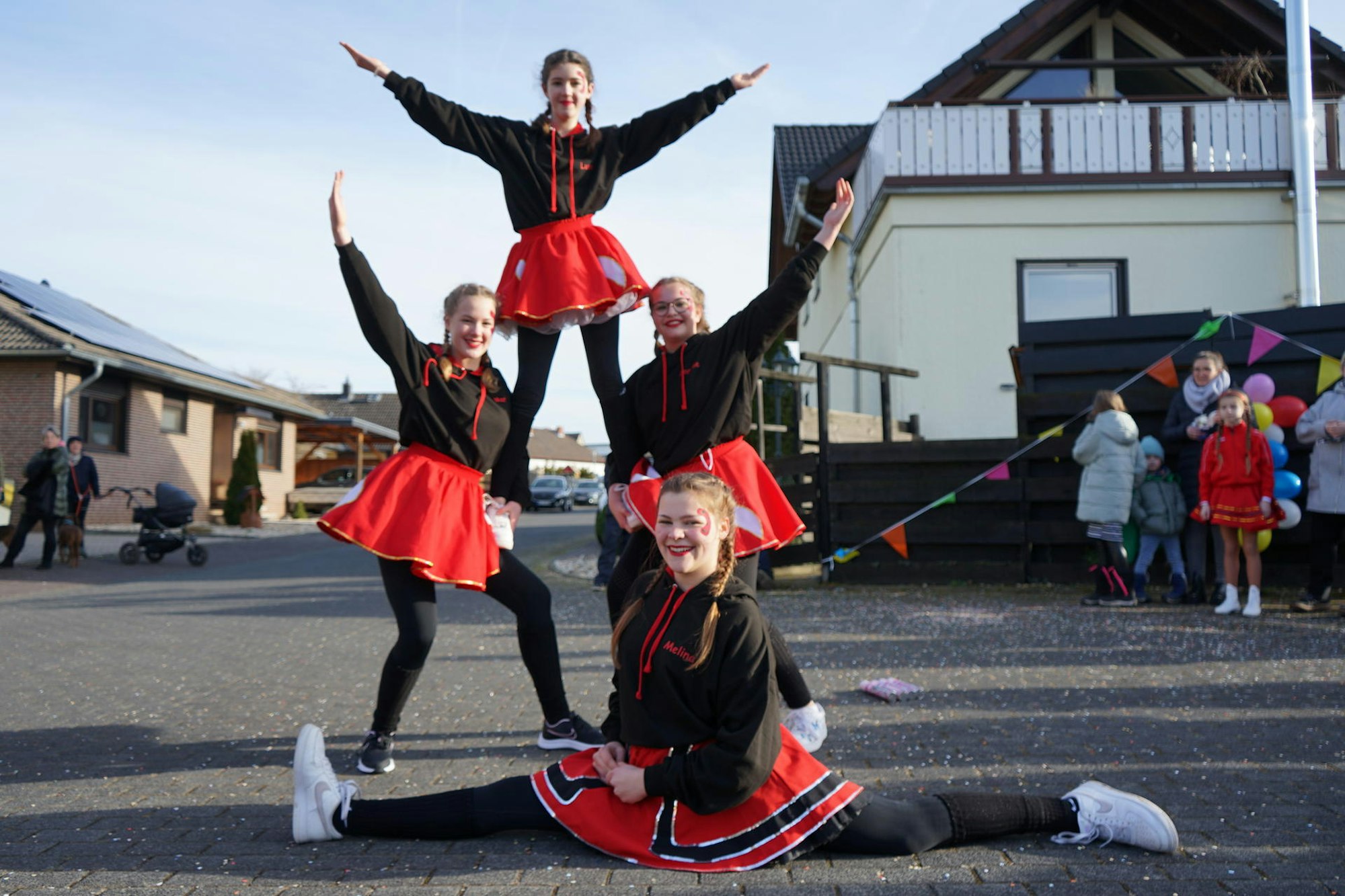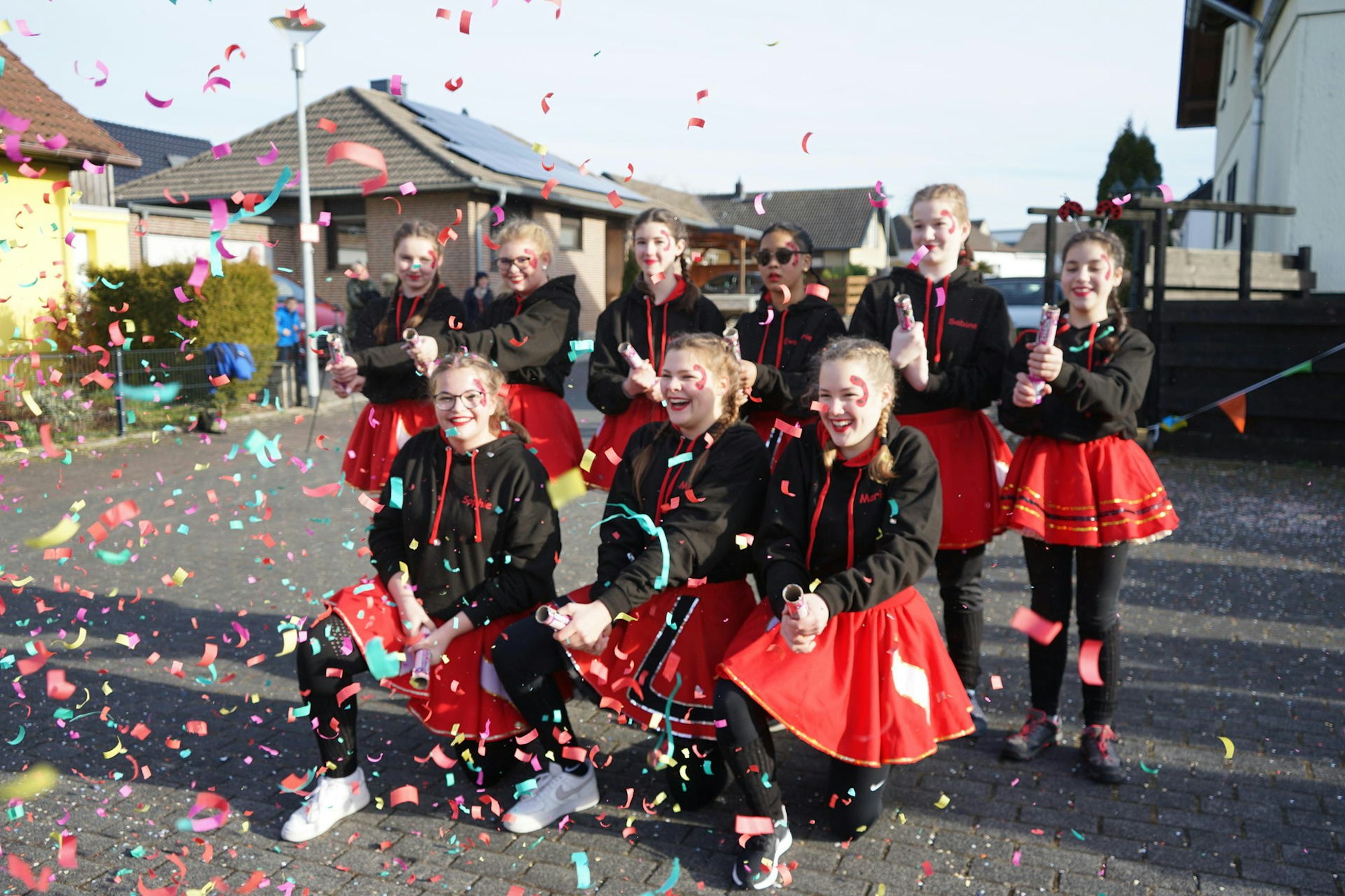 Die Mädchen der Tanzgarde Arloff-Kirspenich mussten bei den Kostümen nach der Flut improvisieren und haben sich das Motto „Tanzkäfer“ überlegt. Vereinsmitglieder sorgten mit sehr viel Abstand für die passende Stimmung.