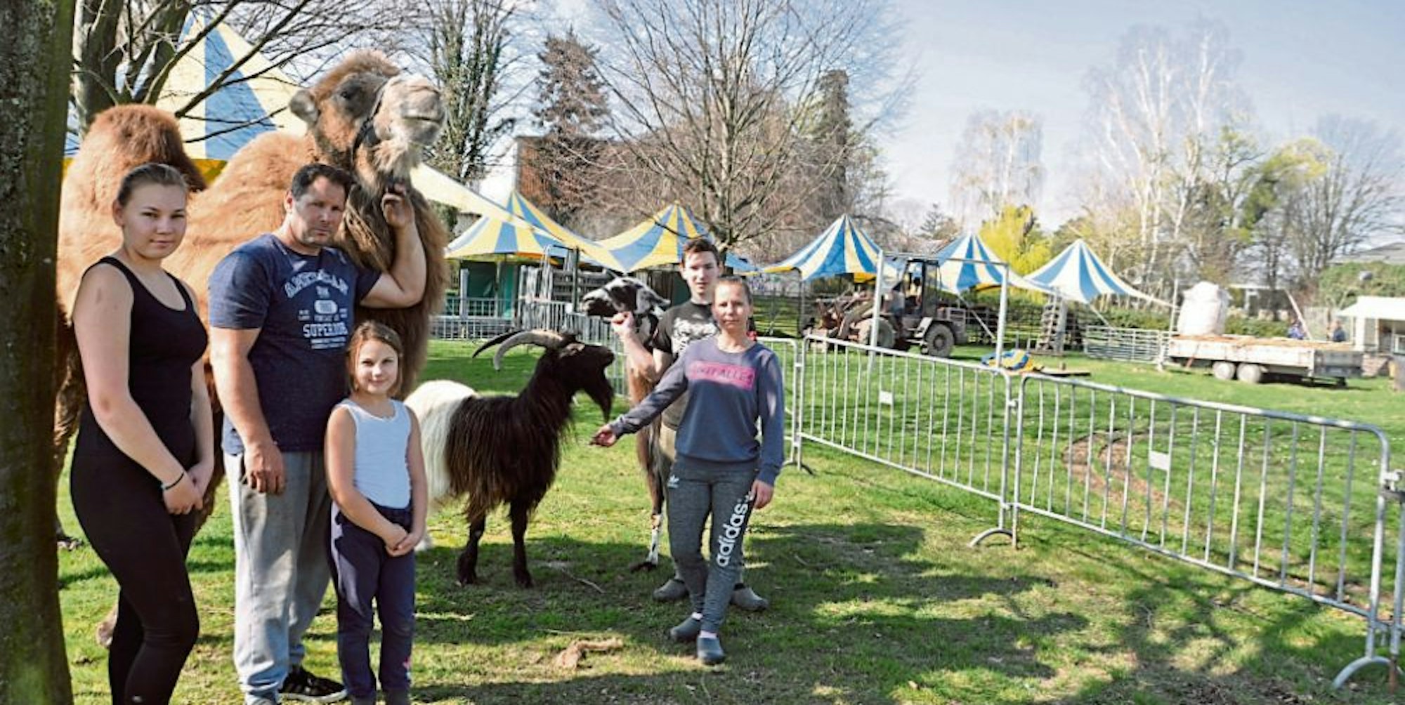 Sein Winterquartier in Düren hatte der Zirkus Anfang des Monats dank der Sommereinnahmen mit knapper Not überstanden. Durchzubringen hatten Stella Cramer und ihr Lebenspartner Mike Lauenburger nicht nur die drei Kinder Mike (16), Celina (14), Vivien (8) und zwei Großcousins, sondern auch Kamel Hadschi, zwei Friesen- und drei kleiner Pferde, zwei Ponys, einen Esel, eine Ziege, drei Lamas und Alpakas, ein paar Gänse und Hühner sowie die Kängurus Skippy und Gustav.