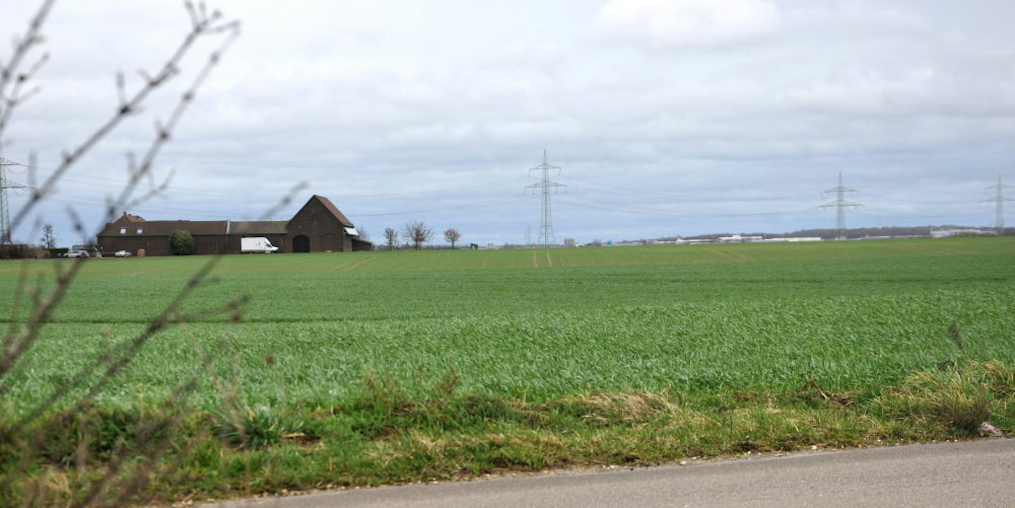 Zwischen dem Heppendorfer Elisenhof (links) und Sindorf (hinten) soll ein interkommunales Gewerbegebiet entstehen.