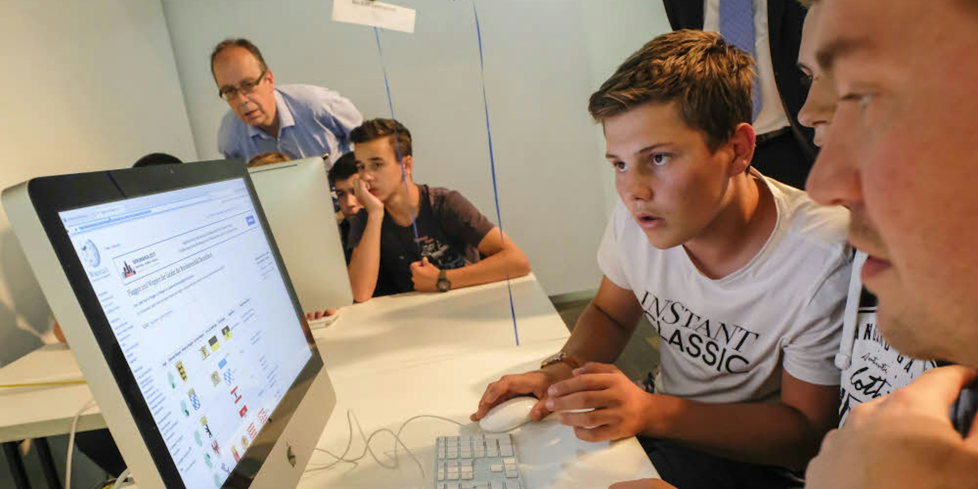 Köln – Am schlimmsten war das Finale für Wolfgang Engels. „Das ist nichts für meine Nerven“, sagte der Informatiklehrer des Max-Ernst-Gymnasiums Brühl, während die Schüler und Schülerinnen seines Teams souverän recherchierten. „Wie hießen Asterix und Obelix in der ersten deutschen Fassung des Comics, der 1965 erschien?“ Die Rollenverteilung beim Team MEGa-Info war klar verteilt: Einer las die Fragen vor, einer gab sie in den Computer ein, die anderen halfen mit Such-Tipps. Die Taktik hat sich gelohnt und für Wolfgang Engels gab es den nächsten Adrenalin-Kick: Mit 33 Sekunden Vorsprung gewann MEGa-Info den Rundschau-Webbewerb 2017 – und den Hauptpreis von 2000 Euro.