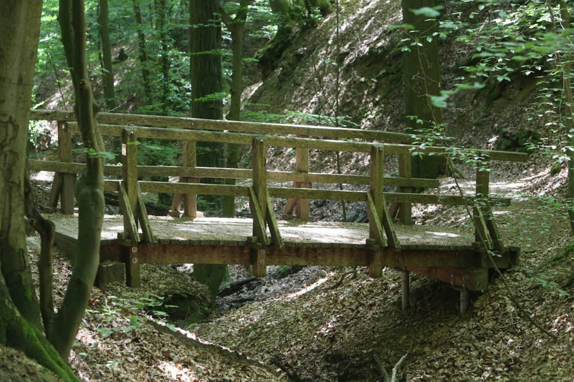 Stellen wir uns vor, er ist von Bad Honnef aus durchs Tretschbachtal gegangen, einer auch heute noch verwilderten Schlucht, der Weg von Totholz gesäumt und an manchen Stellen feucht vom Bachlauf. Festes Schuhwerk ist zu empfehlen, man muss aufpassen, wohin man tritt. Umsichtige Waldarbeiten haben den Pfad stellenweise mit Holzbohlen ausgelegt, kleine Brücken queren den Wasserlauf, im Winter können sie glitschig sein.
