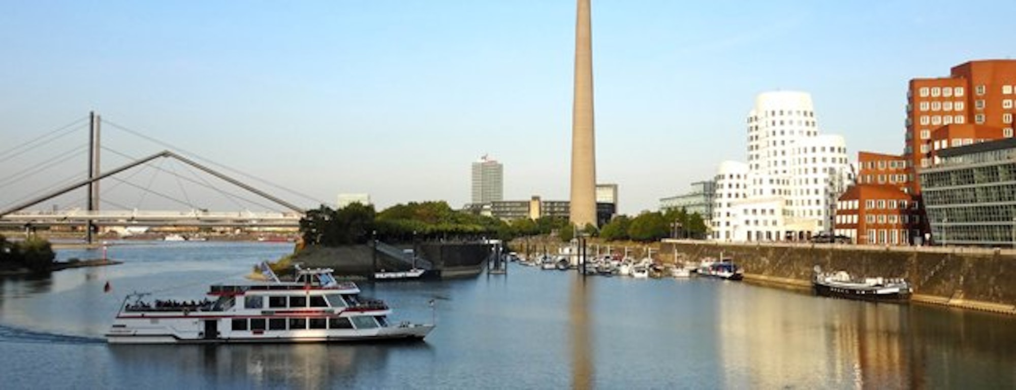 Eine Panoramafahrt mit der Weissen Flotte durch Düsseldorf geht bis zur Theodor-Heuss-Brücke.