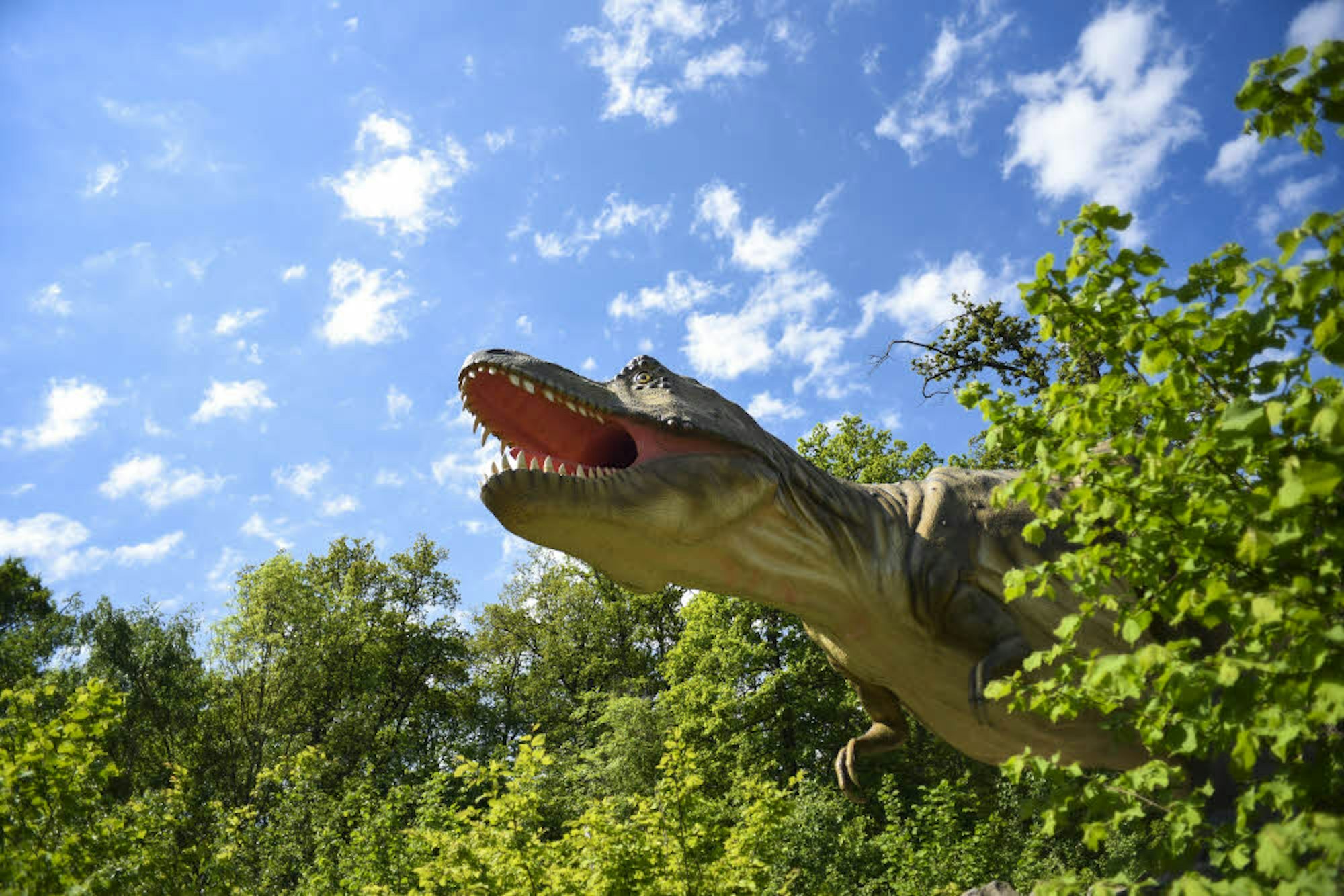 Der Rundgang über zwei Kilometer lädt, mit 150 lebensgroßen Tiermodellen wie dem 25 Meter langen Diplodocus oder einem Monster-Hai, zur Zeitreise durch 620 Millionen Jahre ein.