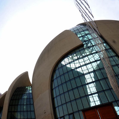 In der Ruine einer alten Kirche sitzt an einem kühlen und regnerischen Sonntag munter plaudernd eine Gruppe Senioren auf Bierzeltbänken vor einem behelfsmäßigen Altar. Durch die verstaubten Fenster fällt helles Licht auf das unverputzte Mauerwerk der Kirchenwände und die vom Schutt befreiten Fliesen des Kirchenbodens.