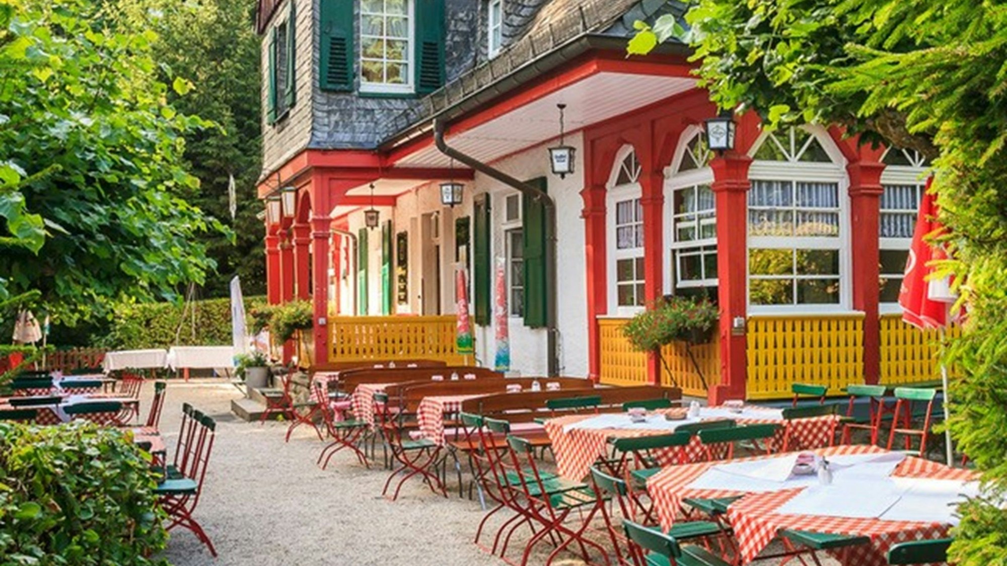 Mitten im Siebengebirge unterhalb des Petersbergs steht das Einkehrhaus Waidmannsruh. Daniel Grewe und sein Team favorisieren eine gutbürgerliche Küche, die saisonal variiert. Zu den Konstanten gehören hausgemachte Flammkuchen aus dem Steinofen, die zum Beispiel mit Räucherlachs, Dill und Schmand oder mit Tomate, Mozzarella, Basilikum und Schmand (je 14,90 Euro) belegt werden. Ein typischer Hauptgang ist Ragout von der Hähnchenbrust in Champignon-Estragon-Rahm mit Brokkoli und Fettuccine (22,90 Euro). Bald ergänzen Gerichte mit Pfifferlingen das Angebot. Wanderer lieben den hauseigenen Kuchen. Frisch vom Fass gibt es Bitburger Pils, Gaffel Kölsch und Sankt Augustiner Helles. Zudem gibt es selbst gemachte Eistees.