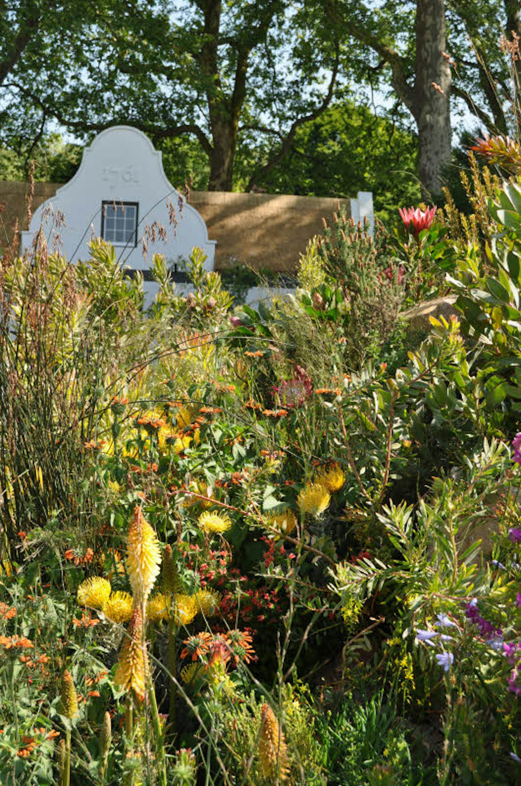 Die umgebende Natur auch im Garten aufzugreifen liegt im Trend. Beim Südafrika-Schaugarten des Designers Jonathan Snow blühen Kaprosen und Fackellilien aus der Fynbos-Vegetation.