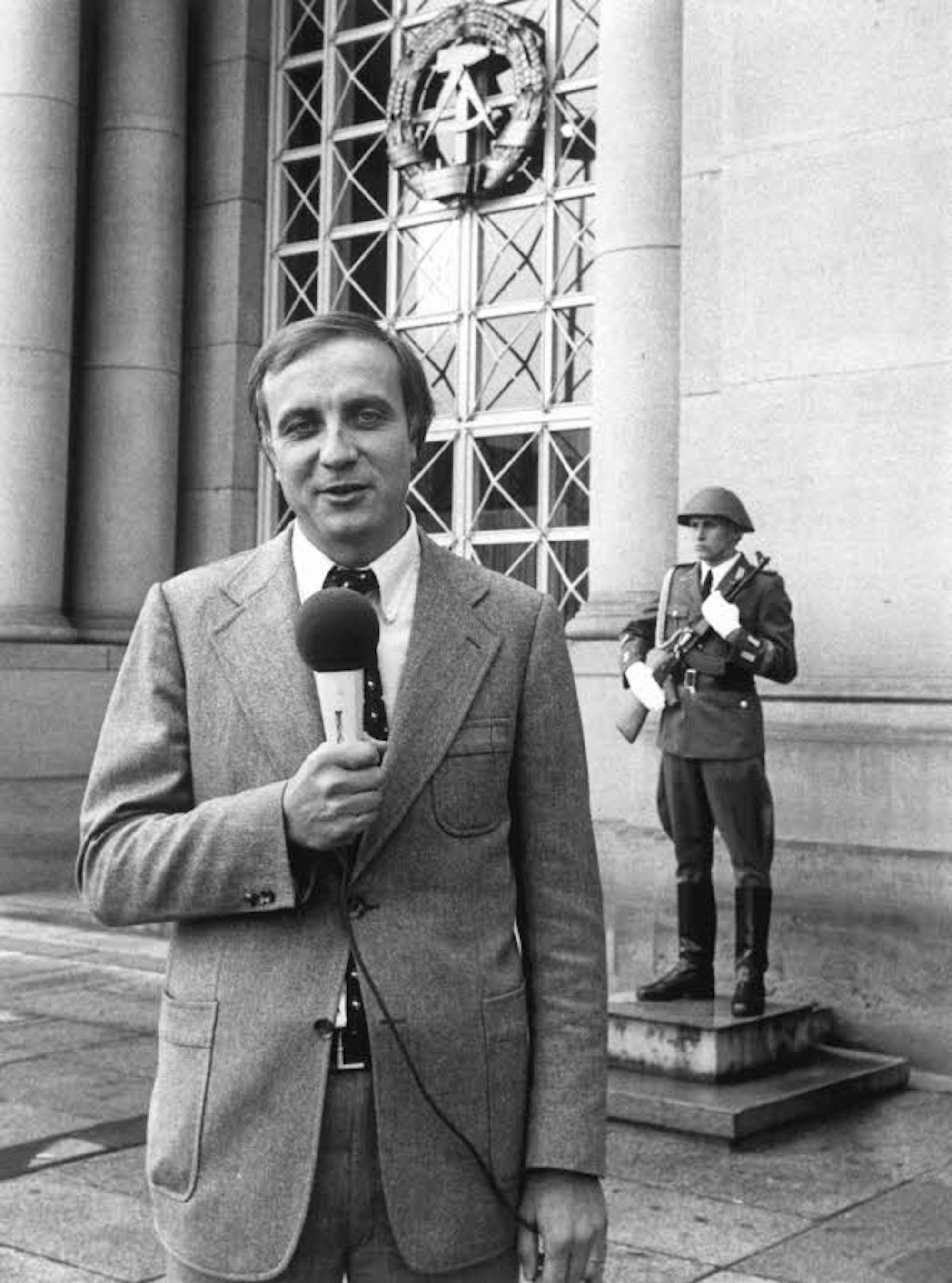 1979: Pleitgen, damals ARD-Korrespondent in Ostberlin vor dem Staatsratsgebäude.