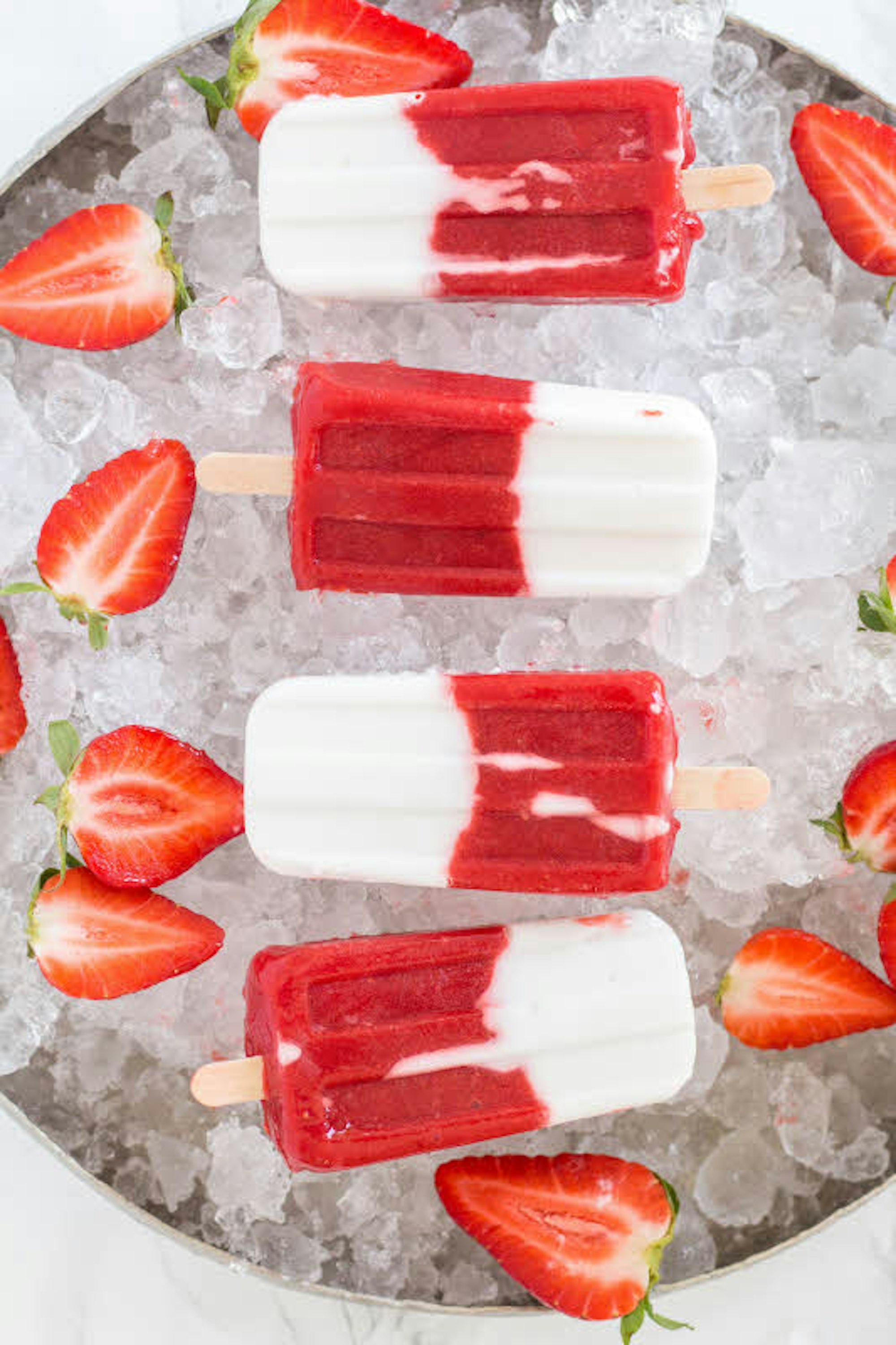 Eis am Stiel lässt sich aus pürierten Beeren und einer Schicht Joghurt oder Kokosmilch leicht selbst machen.