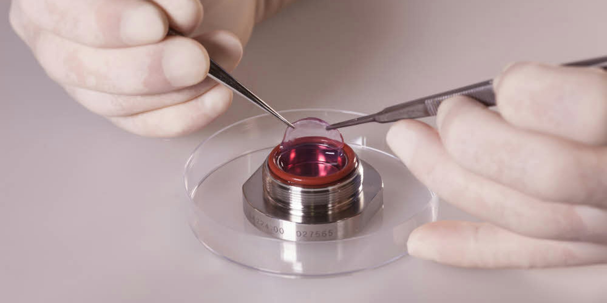 Ehe das aus Stammzellen rekonstruierte Hornhaut-Epithel vorliegt, durchläuft der Prozess mehrere Etappen. Anfang und Ende finden in Köln statt. „Wir kündigen den Patienten an. Das Labor in Modena muss ja Kapazitäten haben und in der Lage sein, die Probe anzunehmen.“ Wenn das alles geklärt ist, holt ein Kurier aus Modena die Probe in Köln ab. Im Labor werden die Stammzellen isoliert, angezüchtet und eingefroren. Das benötigte Implantat wird „Just-in-Time“ angefertigt, ist etwa so groß wie eine Ein-Euro-Münze und gelartig. „Wir erstellen einen OP-Korridor, planen und besprechen das Notwendige mit dem Patienten und geben dem Labor sechs Tage vor der Operation grünes Licht.“ Die Stammzellkulturen können bis zu einem Jahr aufbewahrt werden.