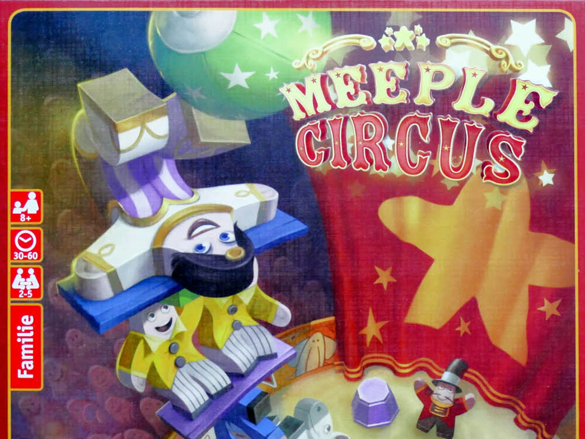 Gesucht wird die beste Zirkusvorstellung. Kleine Figuren stellen Akrobaten, Tiere und Requisiten dar. Unter Zeitdruck stapeln wir die Figürchen zu einem atemberaubenden Gebilde. Neben Phantasie und viel Geschick ist Glück gefragt, damit der Aufbau nicht zusammenbricht. Die Meinungen zum Spiel sind extrem. „Es ist schrecklich. Die Regeln haben riesige Lücken. Die Wertung der Siegpunkte ist völlig ungerecht. Man macht sich beim Singen, Klatschen oder Schauspielern lächerlich. Das Material ist so ungenau gefertigt, dass man nur mit Glück funktionierende Figuren bekommt.“ Es kommt auf das Erlebnis an. Wer gewinnt, ist egal. Wir haben Spaß. Singen, Schauspielern, das ist doch lustig! Versteht man den „Meeple Circus“ als originelles, freies Spiel-Zeug, kann es ein herrlicher Spaß sein. Sucht man ein ausgewogenes Spiel mit klaren Regeln und Sieger, funktioniert es nicht.