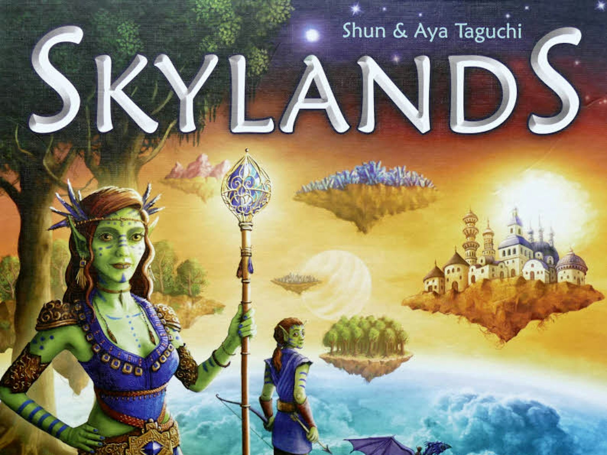 Die Welt „Skylands“ ist zerbrochen und besteht aus dahintreibenden fliegenden Inseln. Unsere Aufgabe ist es, die Bruchstücke zusammenzufügen und eine intakte, bevölkerte Welt wiederherzustellen. Jeder baut einen Teil dieser Welt auf seinem Tableau. Plättchen mit Inselteilen werden gezogen und passend angelegt. Diese Teile besiedelt man mit neuen Bewohnern. Neue Inseln werden erschaffen. Ihre Technologien bieten neue Möglichkeiten. Der aktive Spieler wählt eine Aktion. Inselteile werden aufgedeckt und eingebaut, fertige Inseln besiedelt oder neue geschaffen.