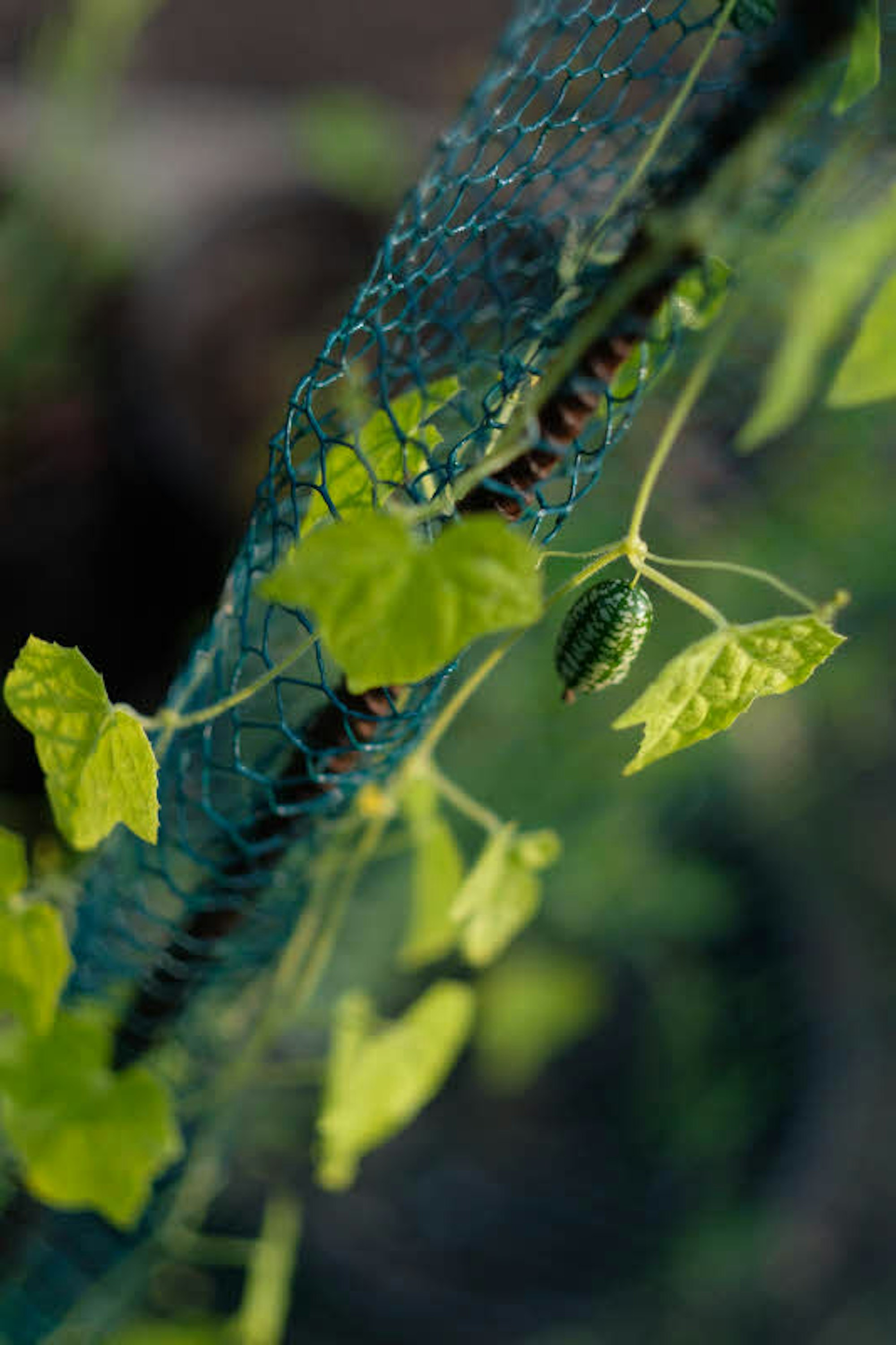 ...winzige Mini-Gurken und ihre dekorativen Ranken sind zu sehen.
