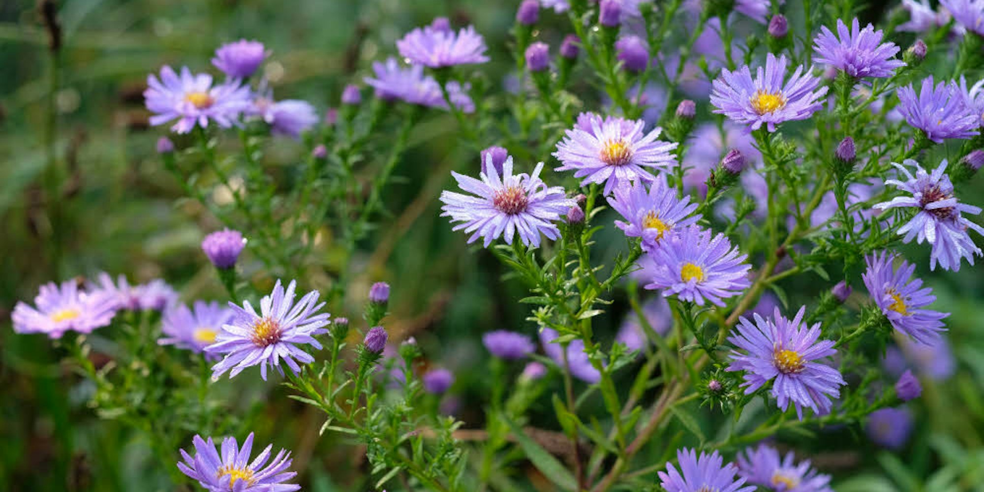 Das kühle Blau der Astern hat in den Beeten das Rosa der Herbstanemonen abgelöst, im Beet herrscht Herbststimmung.