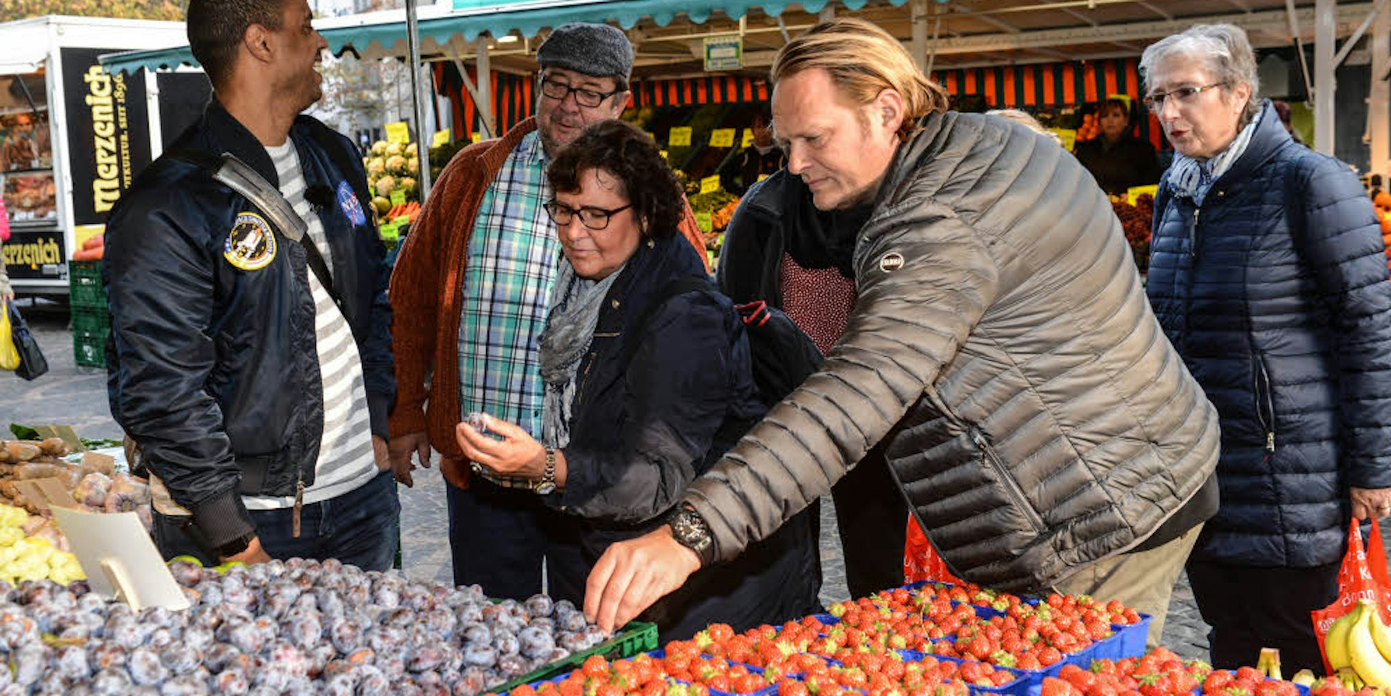 Auf dem Münsterplatz in Bonn ersteht der Fernsehkoch frisches Obst.