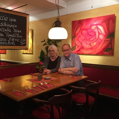 Ein Glück, dass das Haus die Kriegswirren unbeschadet überstanden hat. Das führte auch dazu, dass den Bewohnern des Viertels hier nach der Währungsreform am 21. Juni 1948 ihr Startguthaben von 40 DM pro Kopf ausbezahlt wurde. Susanne und Johnny Erdmann leiten die Traditionsgaststätte seit 1978. Johnny Erdmann (71) dirigiert das Geschehen hinter der Theke. 120 Gäste fasst das Lokal. Hinzu kommen im Sommer 80 Sitzplätze im Garten. Der erfahrene Gastronom hat ein Faible für alles Bayrische. Das zeigt sich sowohl bei der Auswahl des Bieres – neben Reissdorf Kölsch und Krombacher Pils wird helles und dunkles Andechser gezapft – als auch bei vielen Einrichtungsgegenständen wie der mehrspännigen Bierkutsche, einer handgefertigten Schnitzerei aus Oberammergau, die hinter dem Tresen thront.