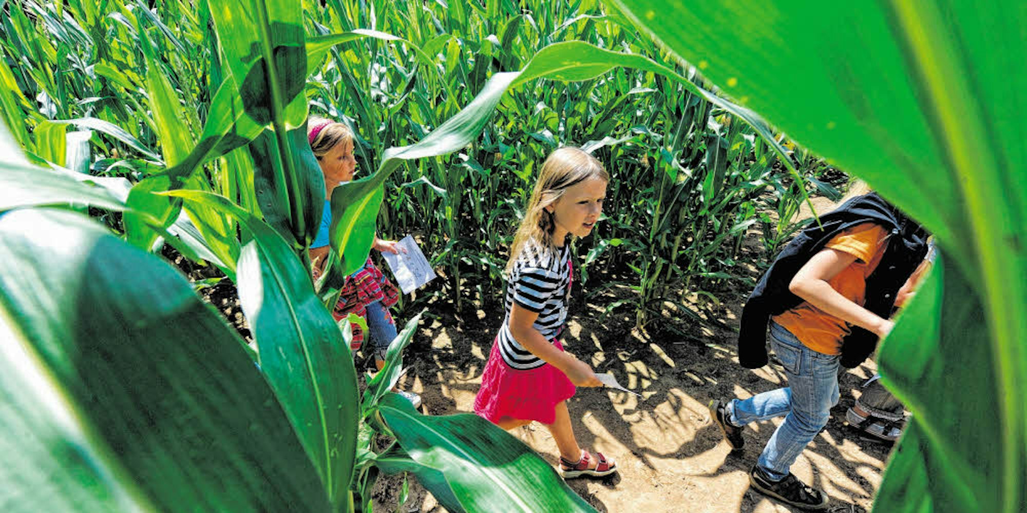 Wer schafft es als erster ans Ziel? Versteckspiele in Labyrinthen sind ein großes Spaß für Kinder im Sommer.