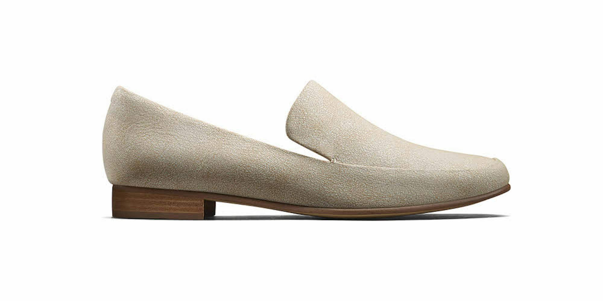 Slipper mit hochgezogenem Blatt von Clarks (110 Euro).