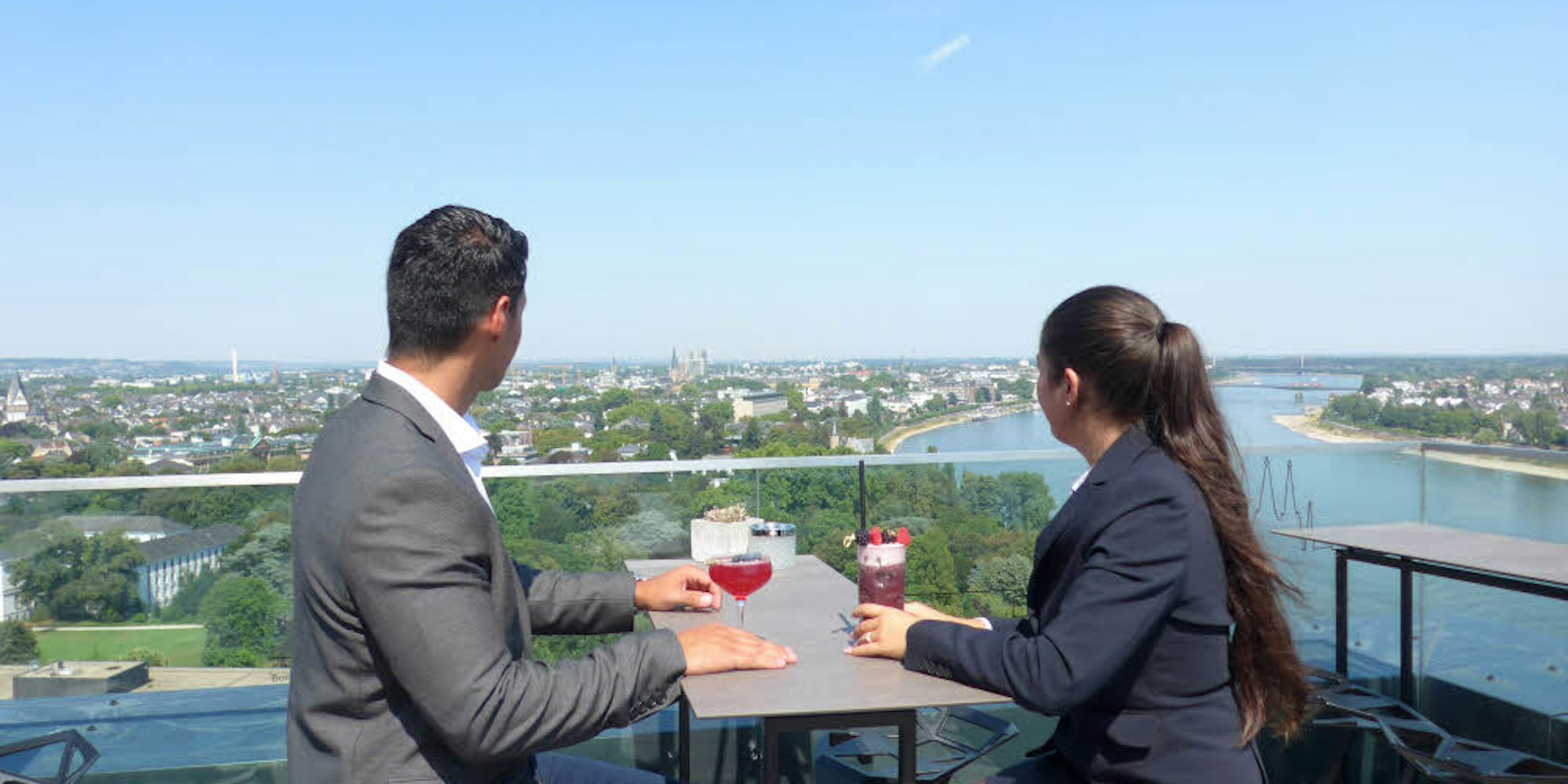 Cocktails mit Fernsicht gibt es in Konrad’s Sky Bar im 17. Stock des Marriot-Hotels in Bonn.