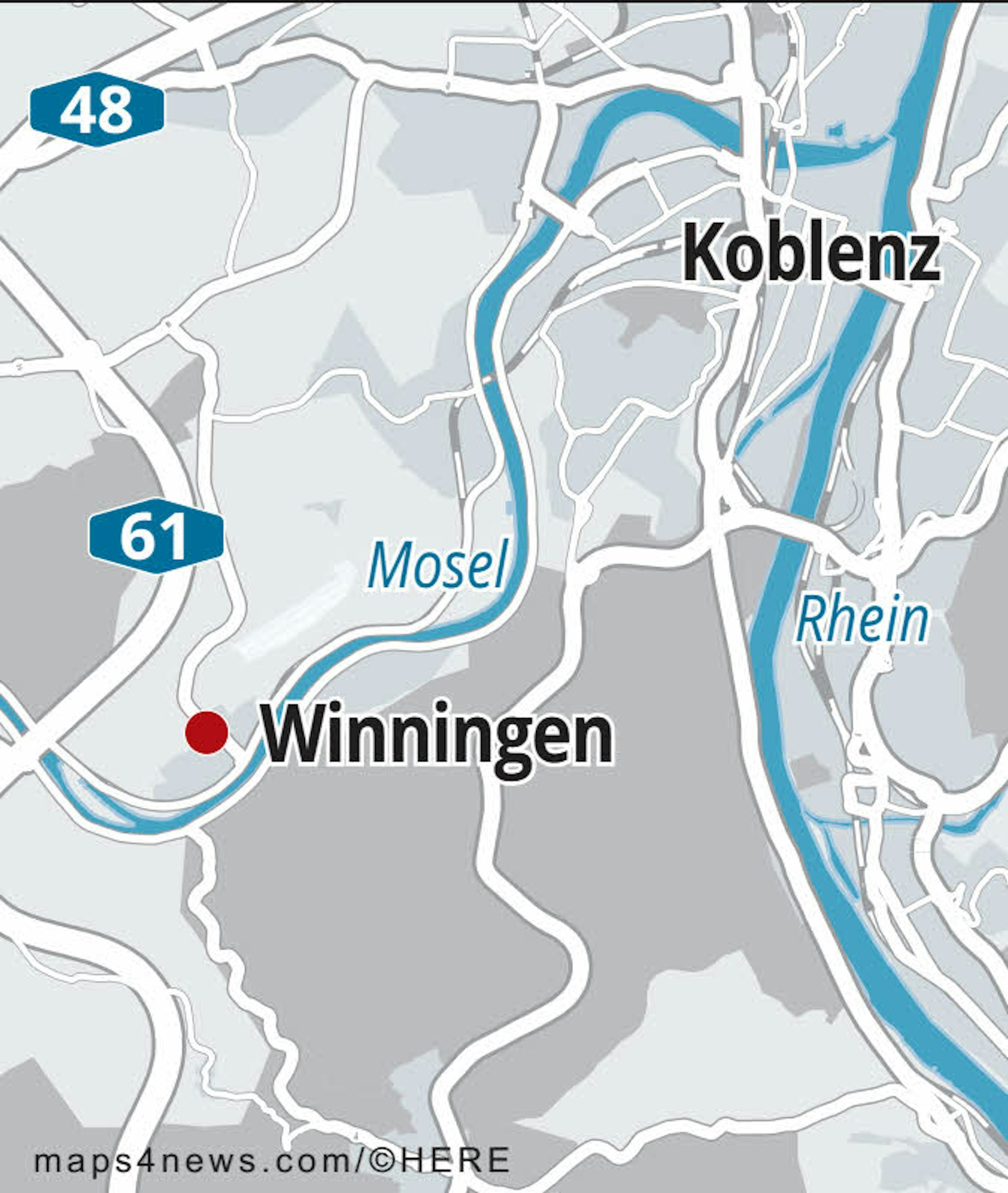 Von der A3 kommend geht es am Dernbacher Dreieck auf die A48 in Richtung Koblenz, am Koblenzer Kreuz auf die A61 in Richtung Mainz/Ludwigshafen, auf der A61 dann die erste Abfahrt (Koblenz-Metternich/Winningen) nehmen.