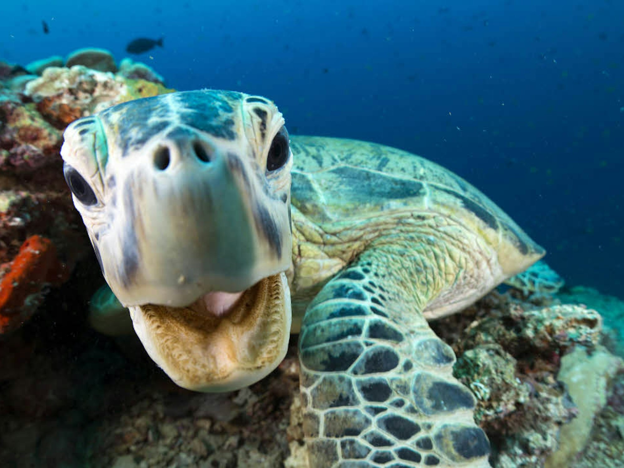 Die Grüne Meeresschildkröte wird hier auch Suppenschildkröte genannt, weil sie lange Zeit zur Herstellung von Schildkrötensuppe diente.