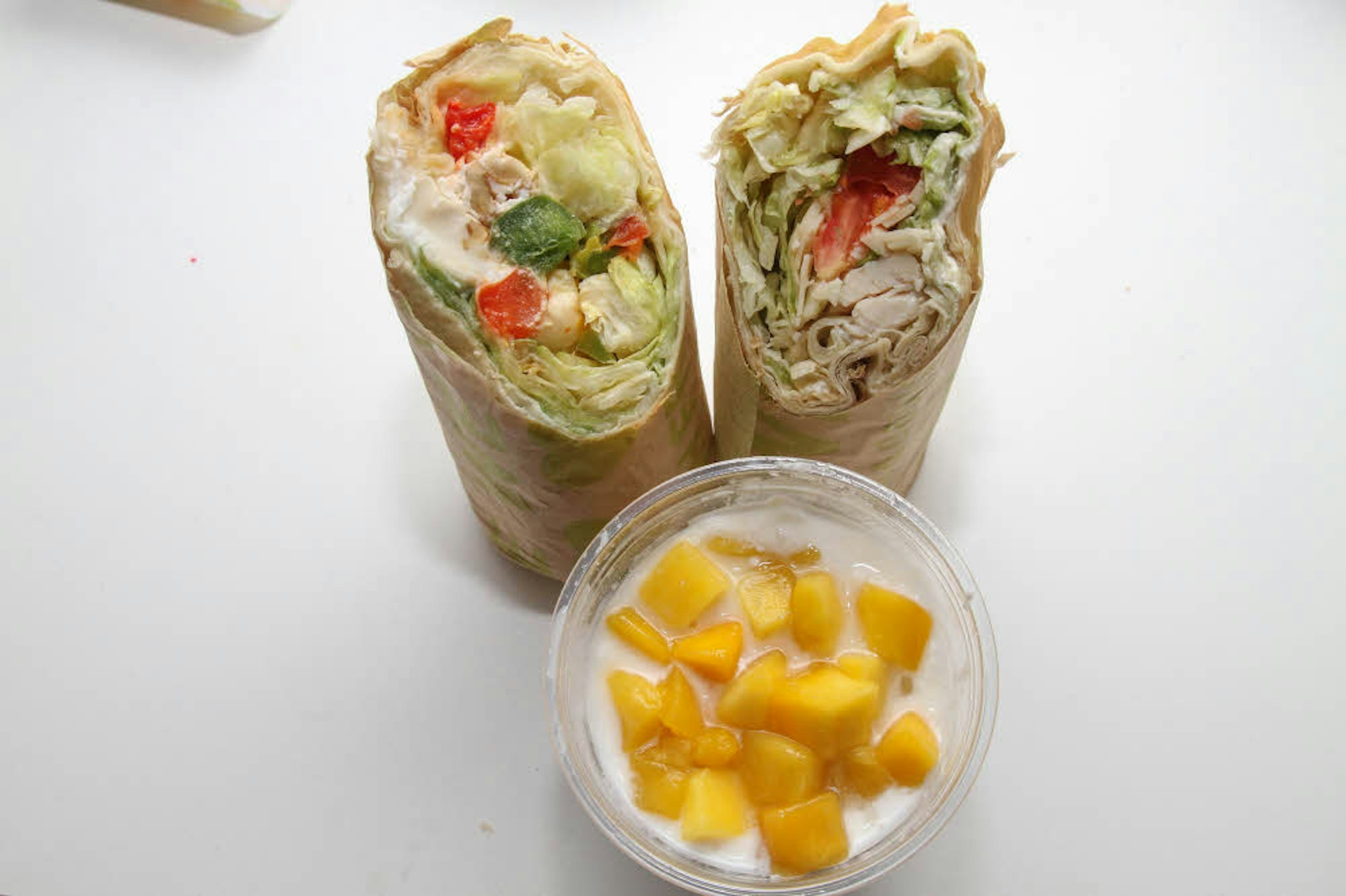 Zwei Wraps und einen Milchreis gibt es von dean and david.