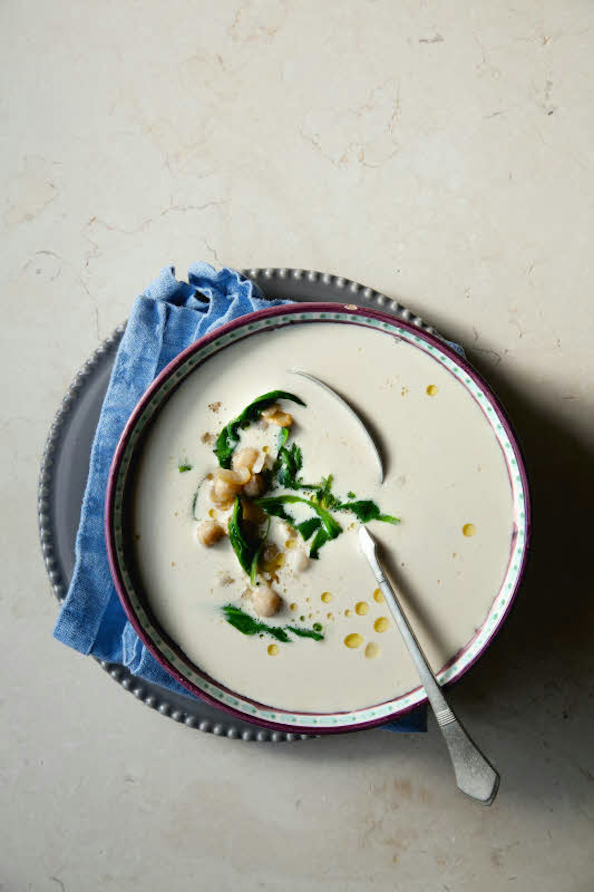 Praktisch ist, dass die Kichererbse sowohl mit Lamm als auch Hühnchen und Wild ein wunderbares Aroma entfaltet. Ähnlich wie Linsen verarbeitet Tom Franz auch Kichererbsen gerne zu einer schmackhaften und sättigenden Hummuscremesuppe. Dazu werden Zwiebeln, Karotten, Petersilienwurzel und Sellerie gewürfelt, mit etwas Knoblauch angebraten und dann mit vorgegarten Kichererbsen, Gemüsebrühe, Salz, Pfeffer und Kreuzkümmel glatt püriert. Ein Topping aus Spinat und ganzen Kichererbsen sorgt für mehr Textur und das optische Etwas.