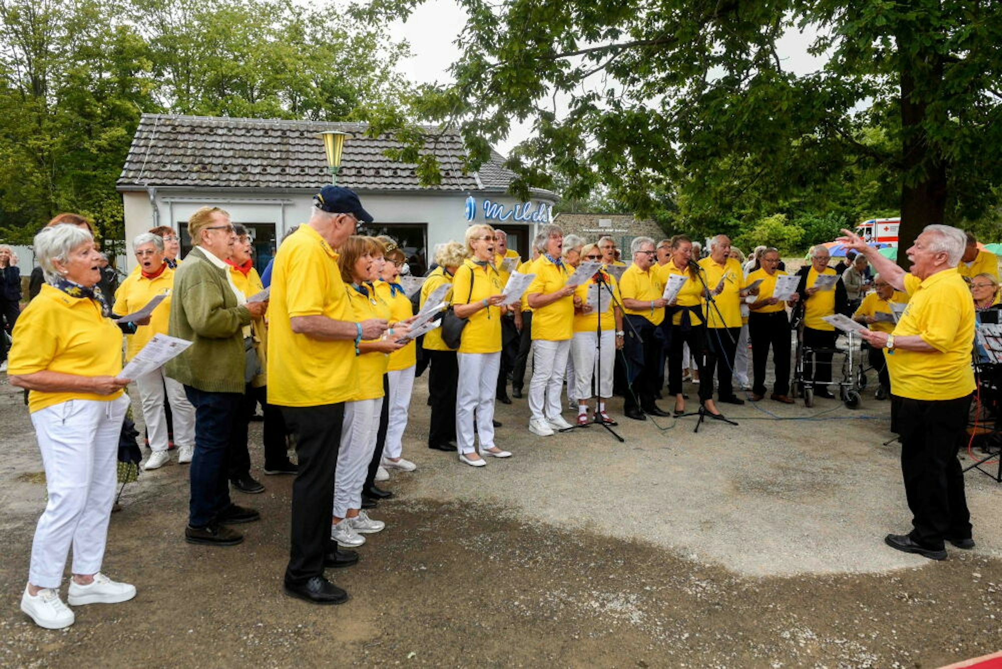 Der Senatschor der Fidelen Bröhler Falkenjäger sang im Freilichtmuseum Kommern „Hallo Milchbar“ zur Melodie von „Amazing Grace“.